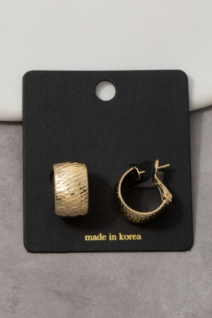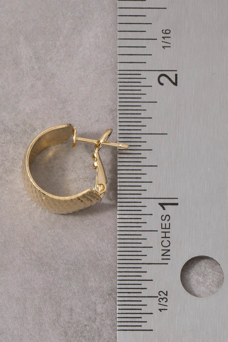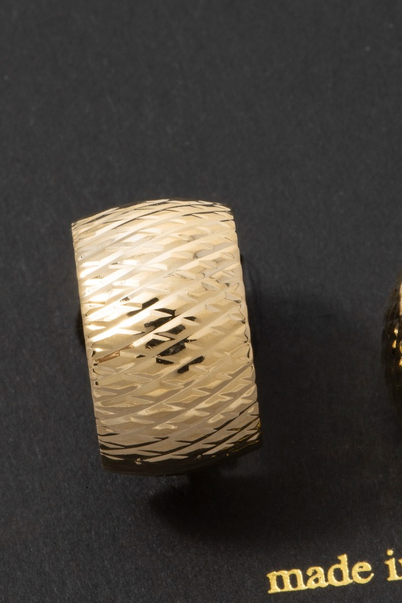 • This pair of earrings features a fashionable woven textured wide huggie style. Immerse yourself in fashion finesse with this statement pair of earrings.