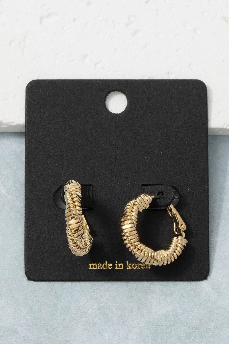 - This pair of hoop earrings brings a luxurious coiled textured style. Experience the joy of accessorizing with this piece that effortlessly combines versatility and charm.