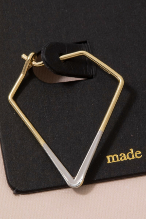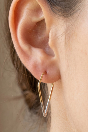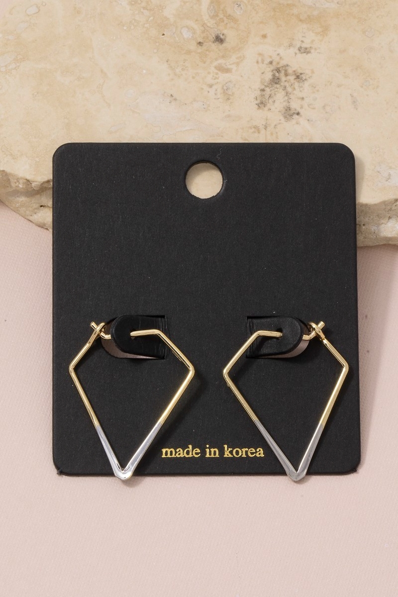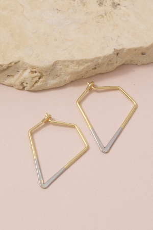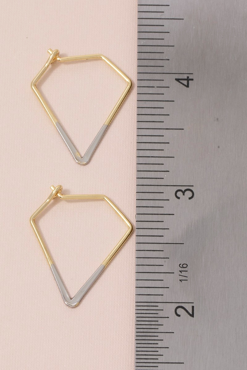 • This pair of hoop earrings showcases a timeless two tone diamond cut geometric style. Elevate your ensemble with this pair of hoop earrings that effortlessly captures the essence of refined fashion.