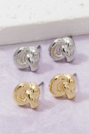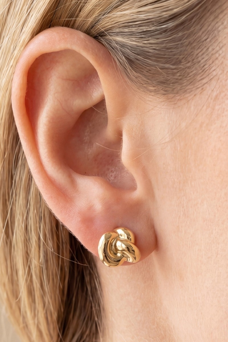 • This pair of stud earrings introduces a stunning puffy knot style. Savor the allure of detailed craftsmanship in this exquisite pair of stud earrings.