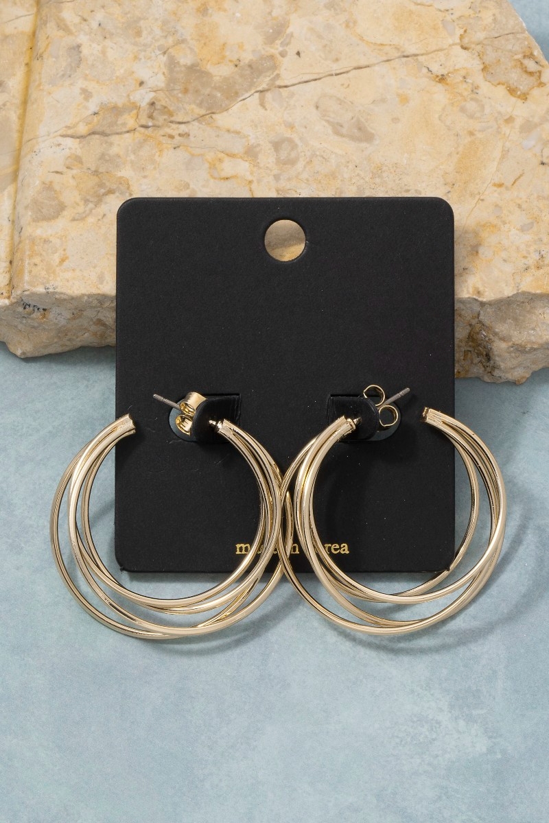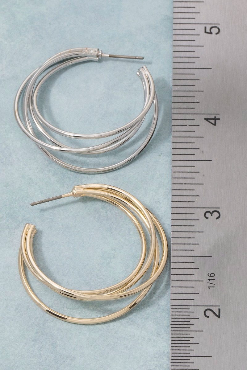 • This pair of hoop earrings displays a fashionable triple strand style. Elevate your ensemble with this pair of hoop earrings that effortlessly captures the essence of refined fashion.