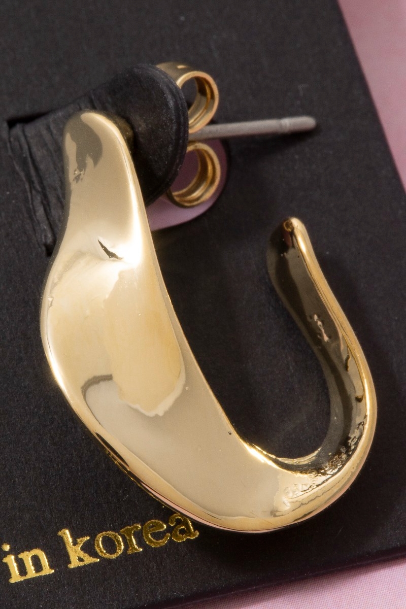 - This pair of hoop earrings displays a fashionable molten wave open style. Experience a burst of creativity in accessorizing as this piece effortlessly sets the tone for your unique style.