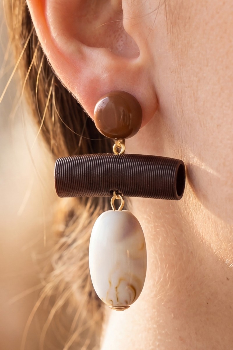 - This pair of drop earrings introduces a stunning mixed bead & marbled stone style. Step into a world of refined taste as this pair of drop earrings effortlessly refines the details of your outfit.