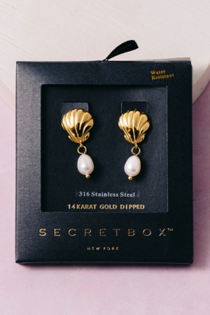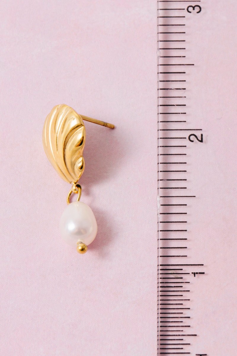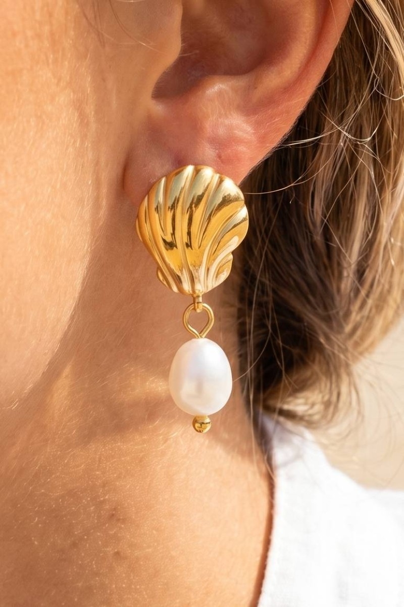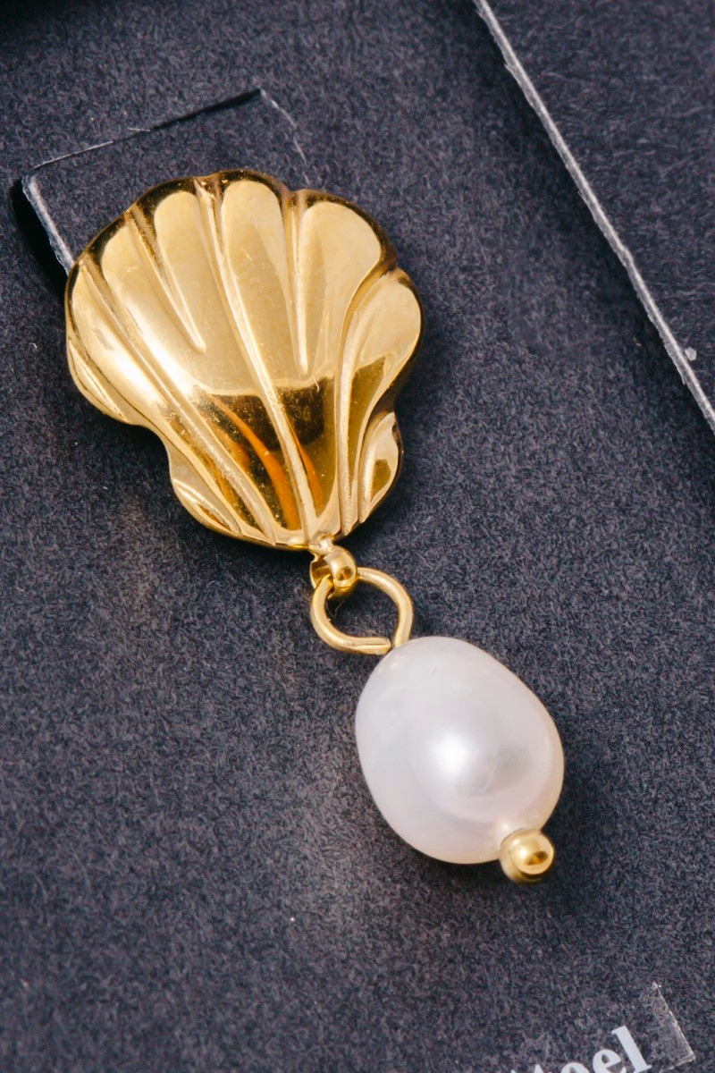- This pair of drop earrings brings a stunning gold dipped scallop shell stud & pearl style. Elevate your ensemble with this pair of drop earrings that effortlessly captures the essence of refined fashion.