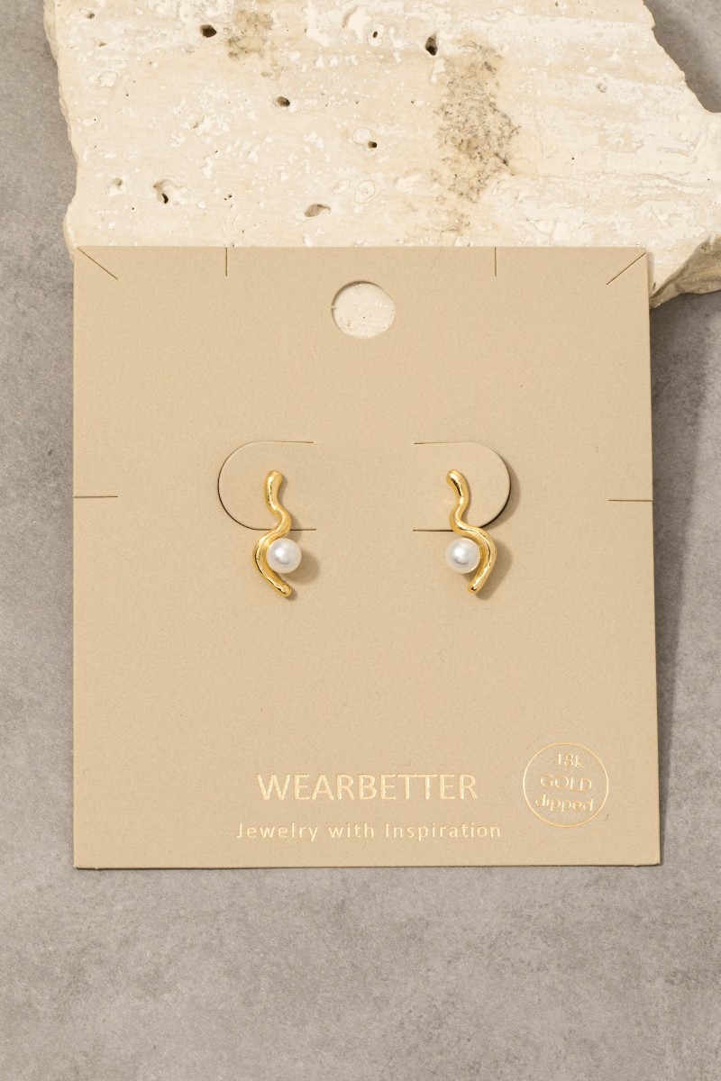 - This pair of stud earrings showcases a timeless gold dipped pearl bead branch style. Experience a subtle blend of modernity and classic charm as this pair of stud earrings effortlessly adorns your ensemble.