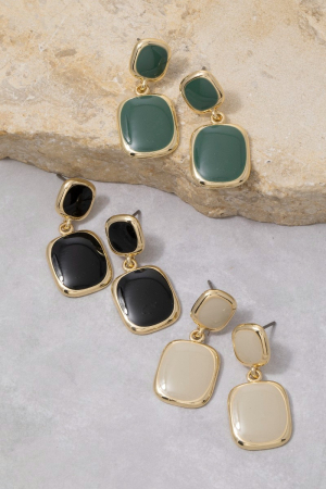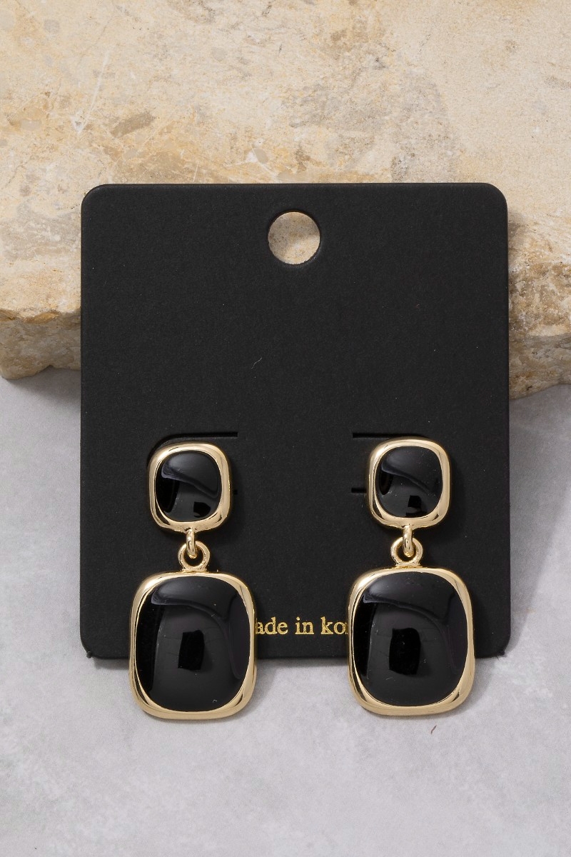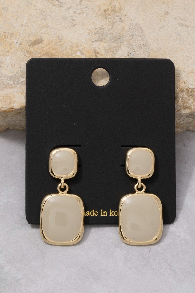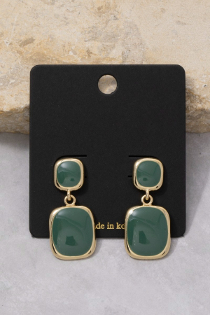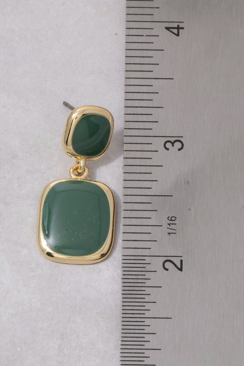 - This pair of drop earrings features a fashionable double cushion colored stone style. Experience a subtle blend of modernity and classic charm as this pair of drop earrings effortlessly adorns your ensemble.