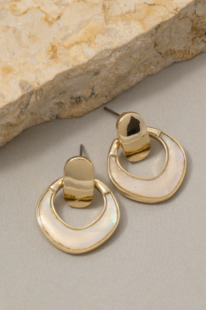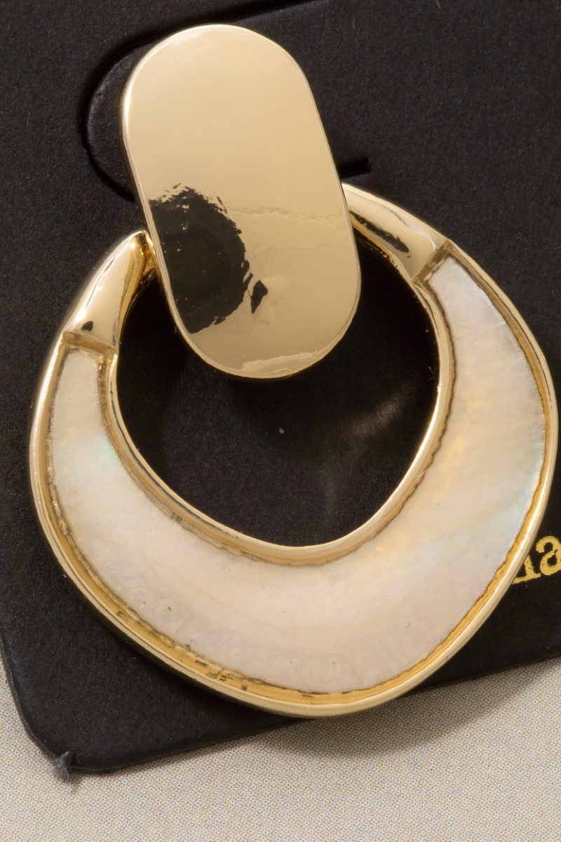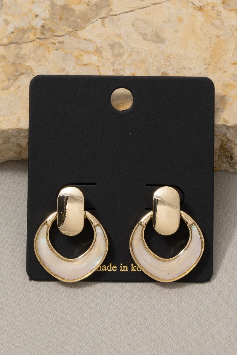 - This pair of drop earrings adds a modern shell crescent & dome door-knocker style. Redefine your look effortlessly with this standout, on-trend piece.