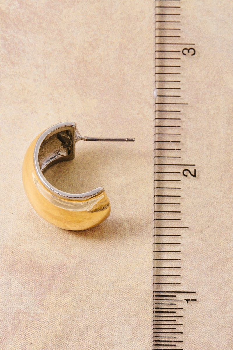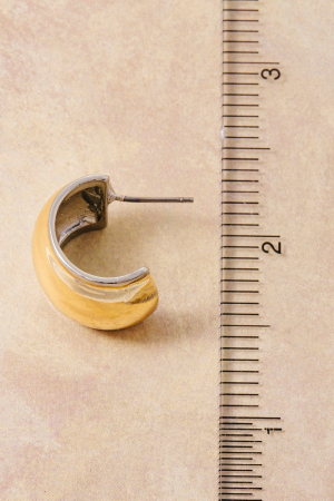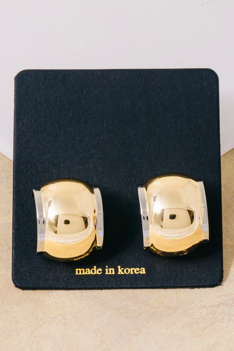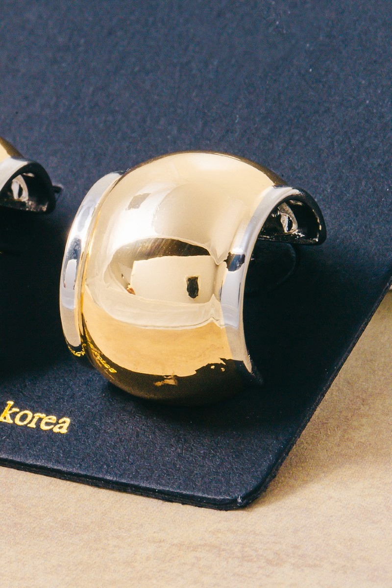 • This pair of hoop earrings brings a luxurious two tone dome shield style. Indulge in the artistry of accessorizing with this unique piece.