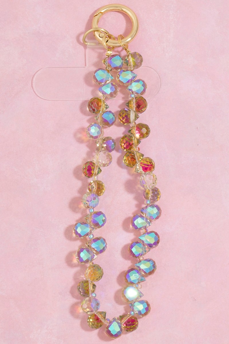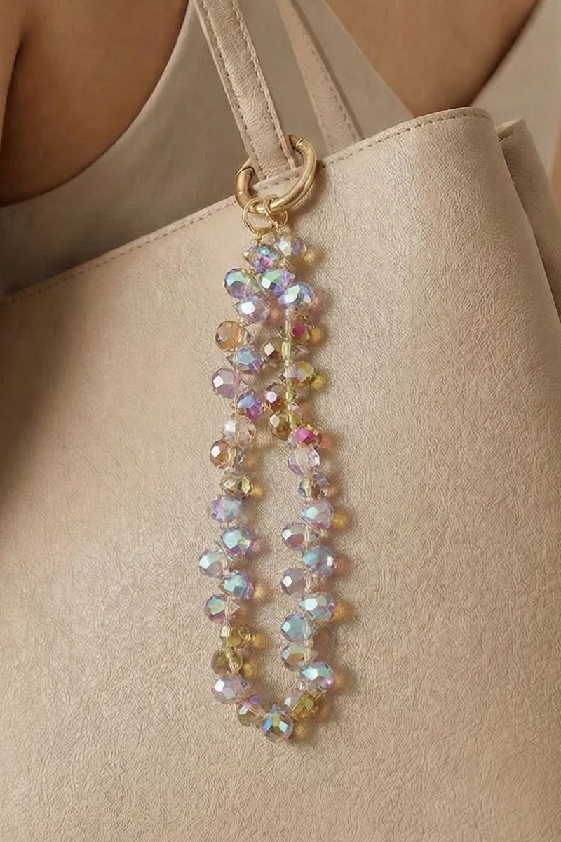 • This keychain showcases a unique crystal beads bag charm style. Experience refined sophistication with this understated yet stylish piece.