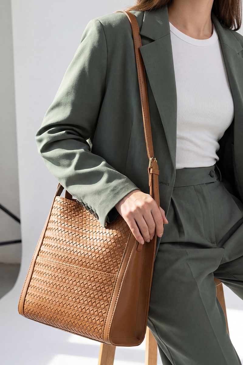 • This shoulder bag brings a stunning fashion woven faux leather style. Immerse yourself in the world of understated glamour as this shoulder bag effortlessly exudes timeless appeal.