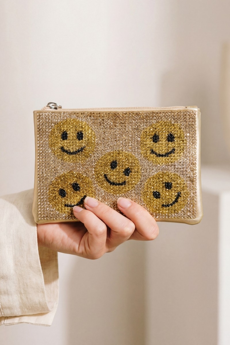 • This coin purse brings a unique smiley face pave style. Elevate your ensemble with this chic, timeless coin purse.