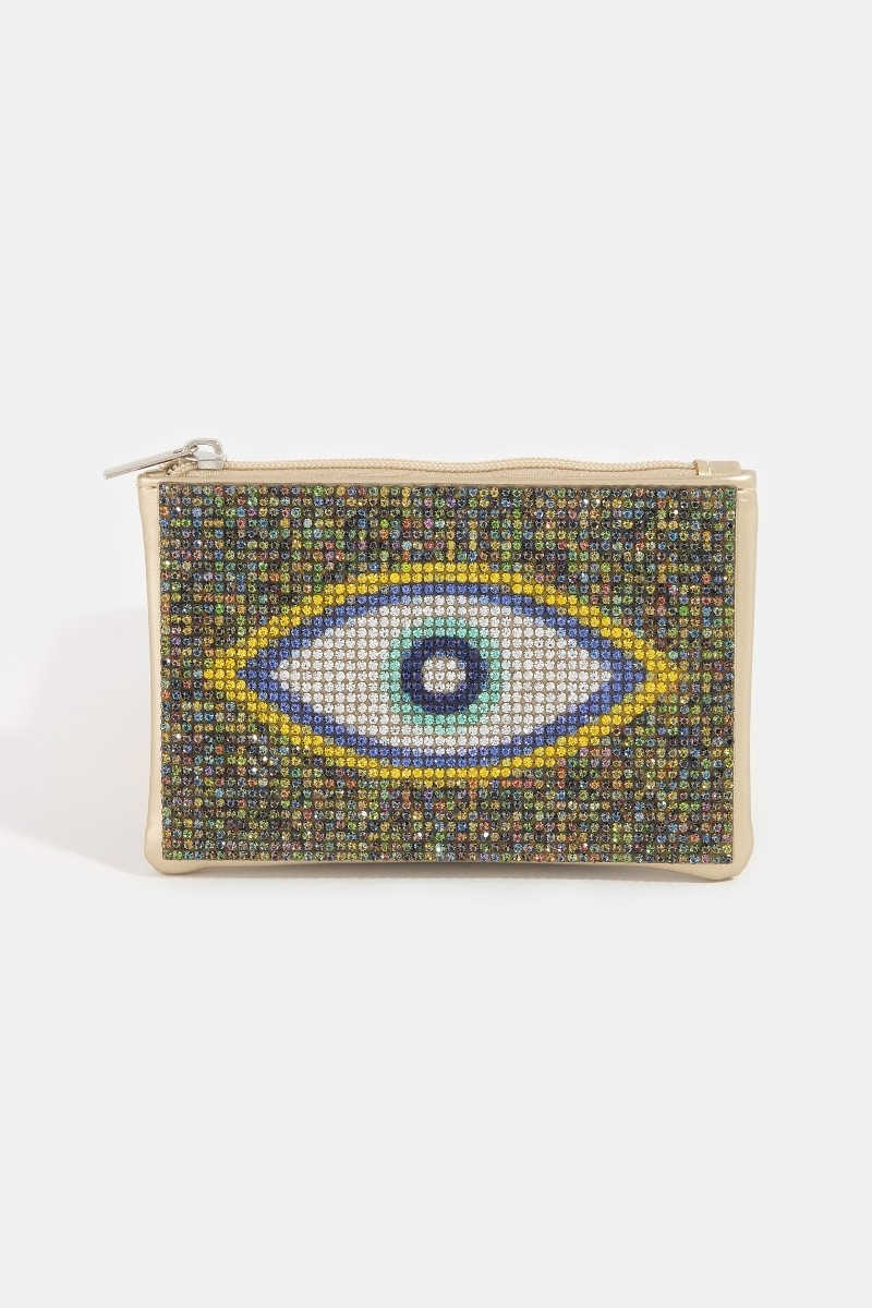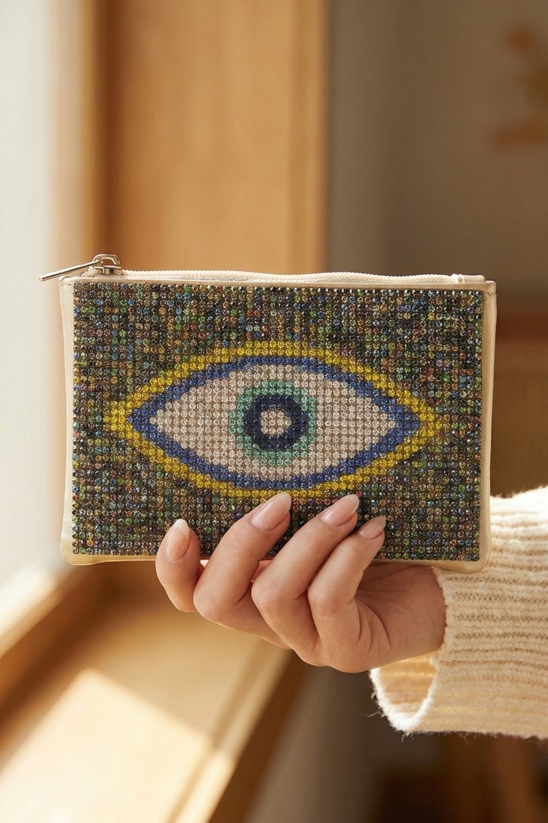 • This coin purse brings a luxurious large evil eye pave style. Savor the craftsmanship that goes beyond the ordinary, as this coin purse effortlessly captivates attention.