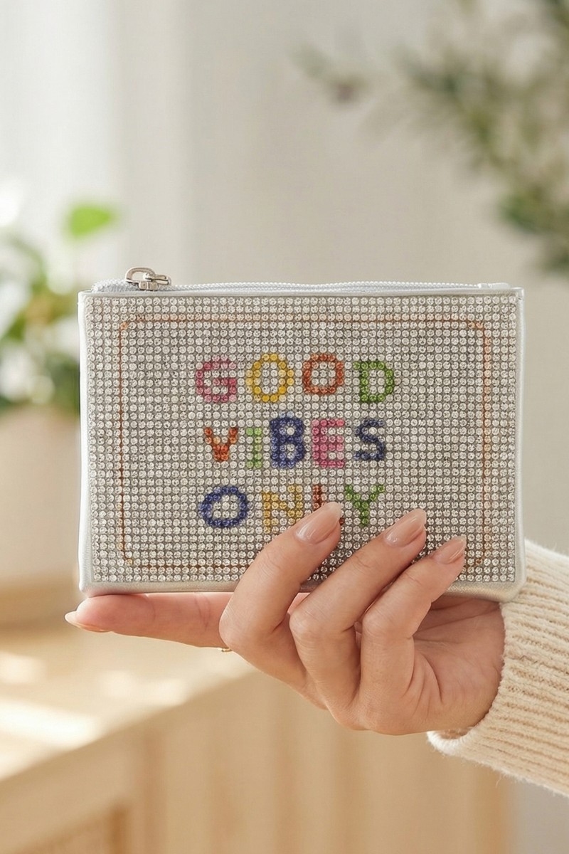 - This coin purse brings a stunning good vibes only pave style. Savor the allure of detailed craftsmanship in this exquisite coin purse.