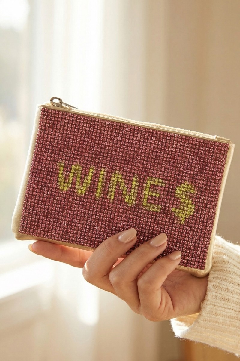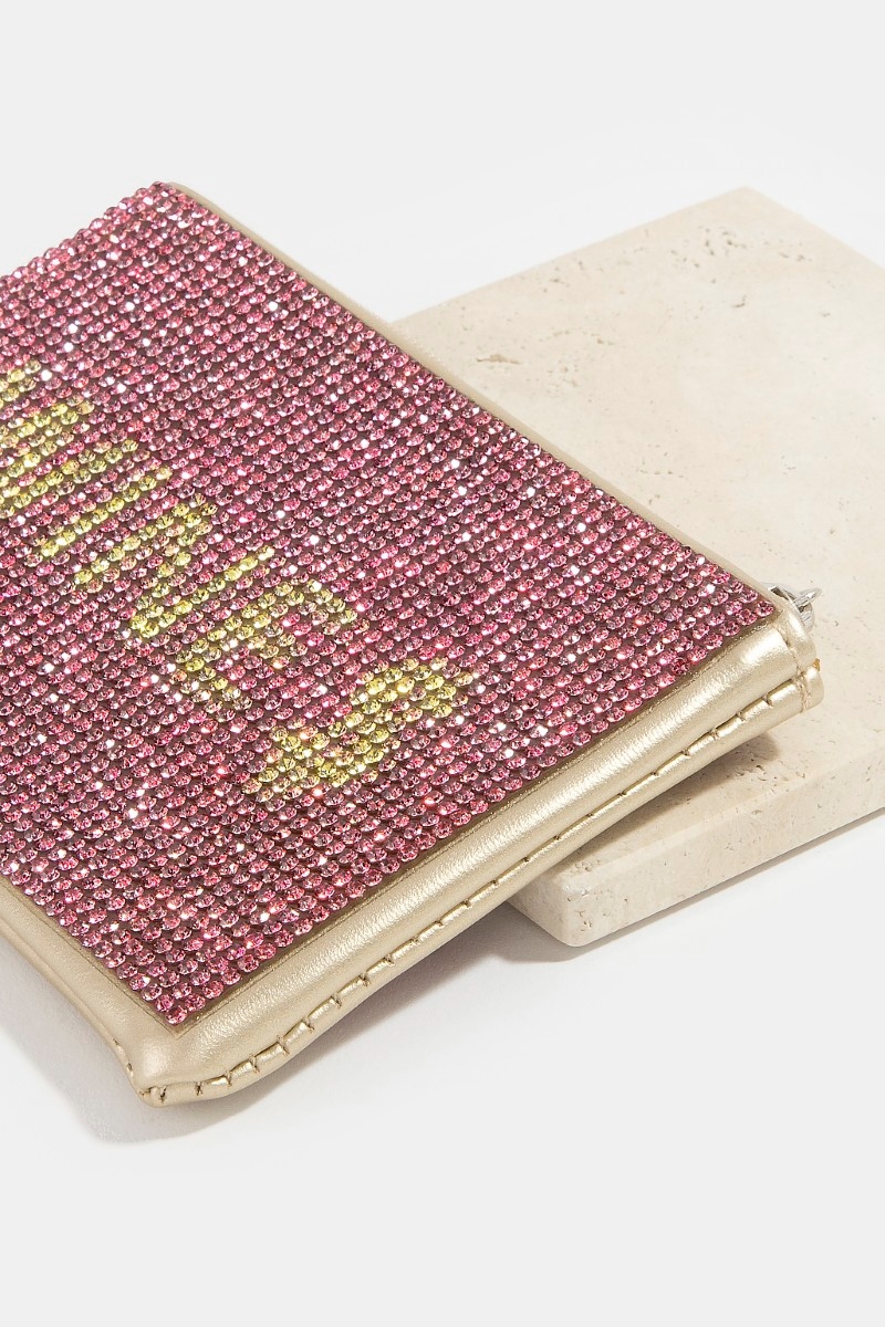 • This coin purse displays a vibrant wine $ pave style. Redefine your look effortlessly with this standout, on-trend piece.