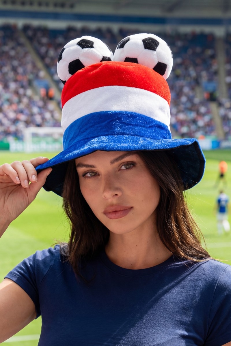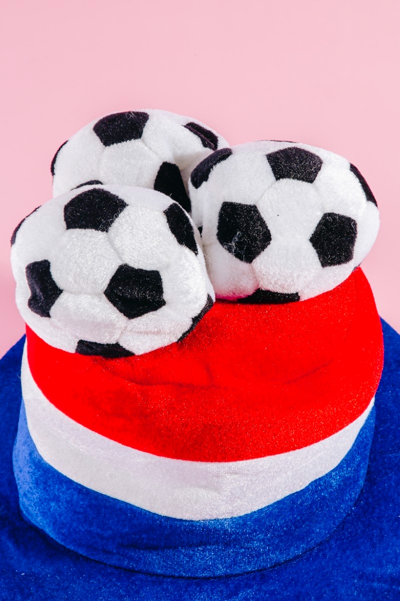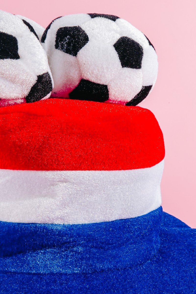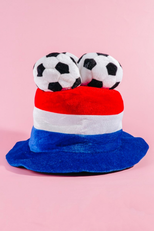 - This hat introduces a stunning red white blue striped soccer ball style. Experience a subtle blend of modernity and classic charm as this hat effortlessly adorns your ensemble.