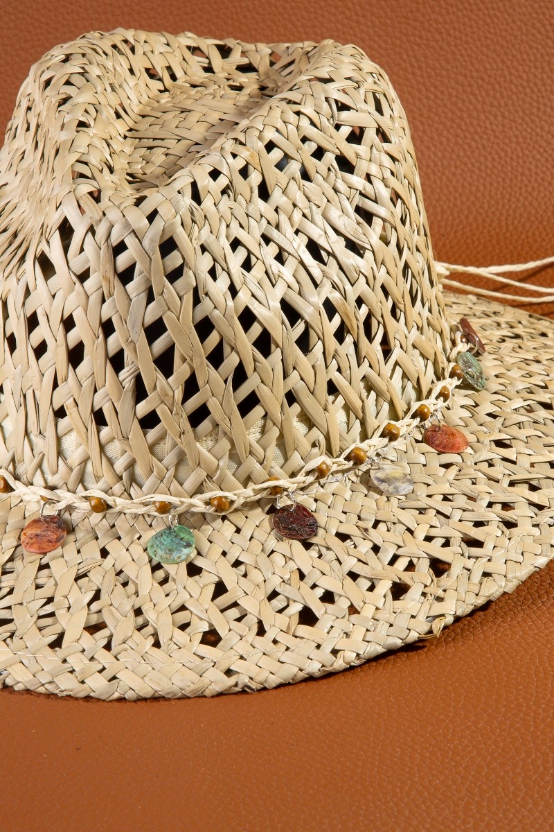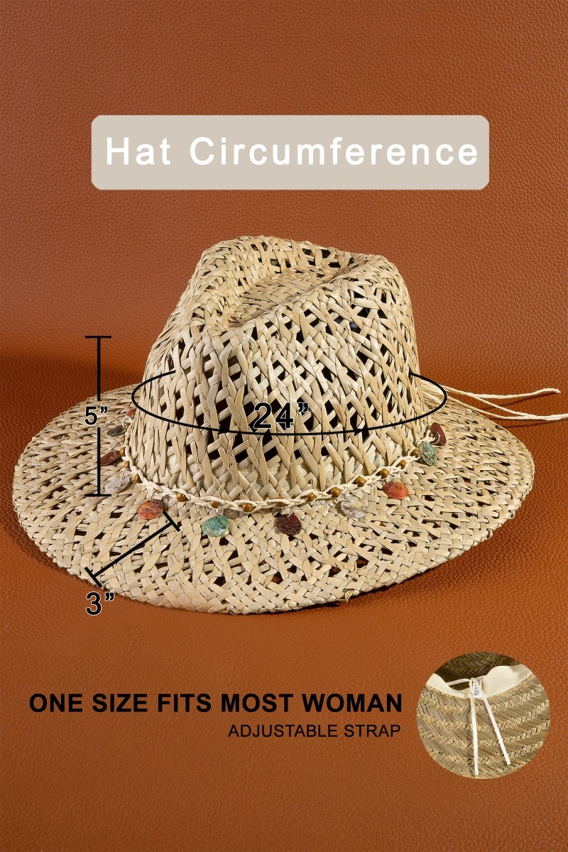 Mixed Beaded And Rope Western Fedora Straw Hat