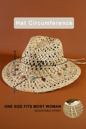 • This sun hat brings a unique straw weave braided rope with discs style. Step into a world of refined taste as this sun hat effortlessly refines the details of your outfit.