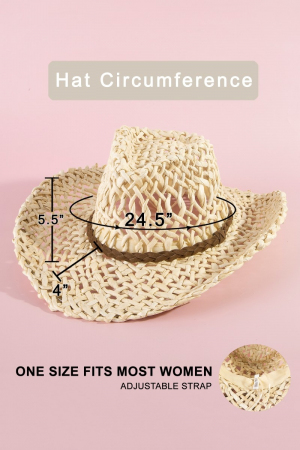 - This cowboy hat displays a fashionable western loose weave straw style. Explore a refined sense of style with this cowboy hat, seamlessly elevating the chic factor of your look.