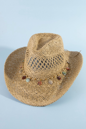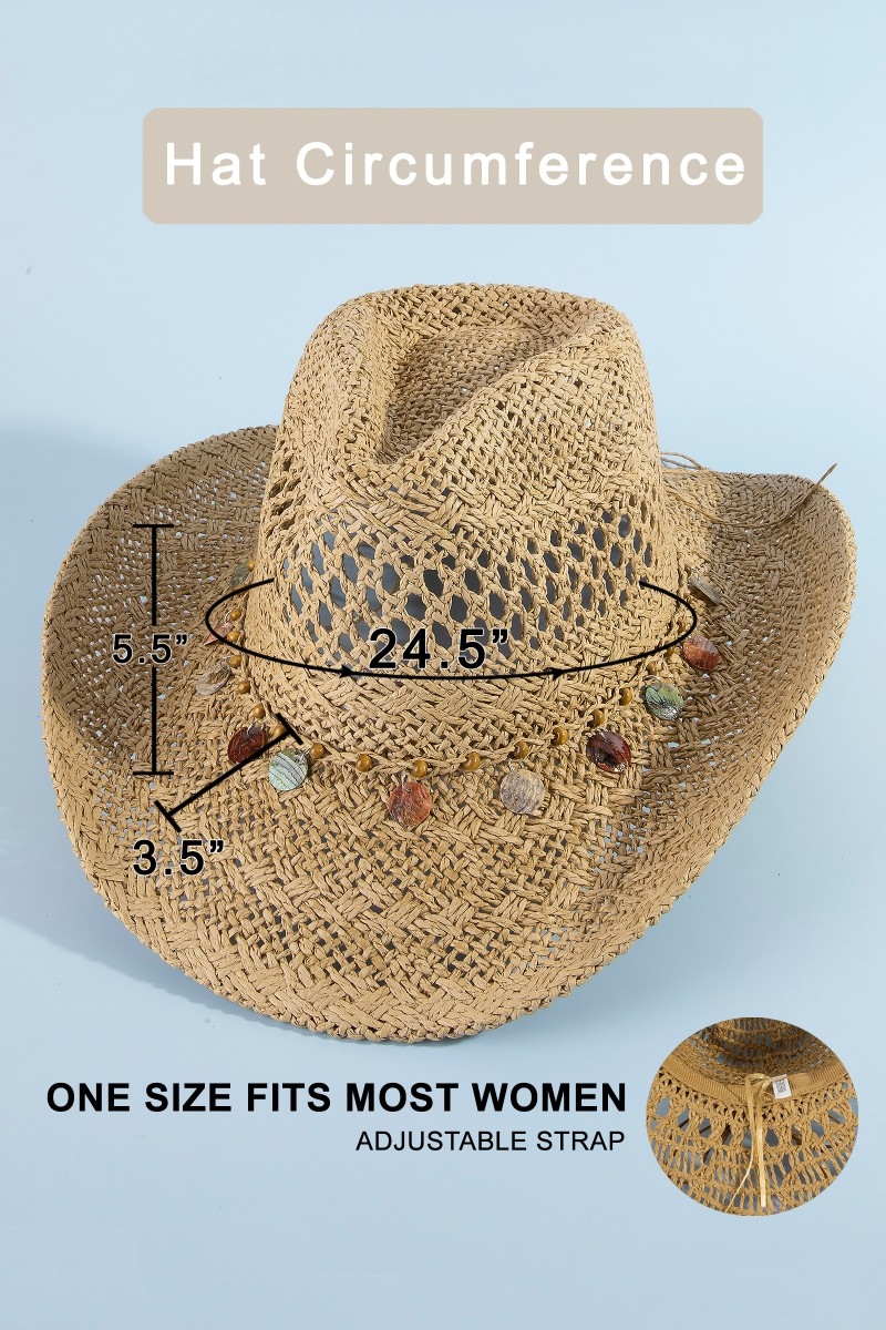 • This cowboy hat brings a stunning straw braid assorted discs strap western style. Elevate your ensemble with this cowboy hat that effortlessly captures the essence of refined fashion.