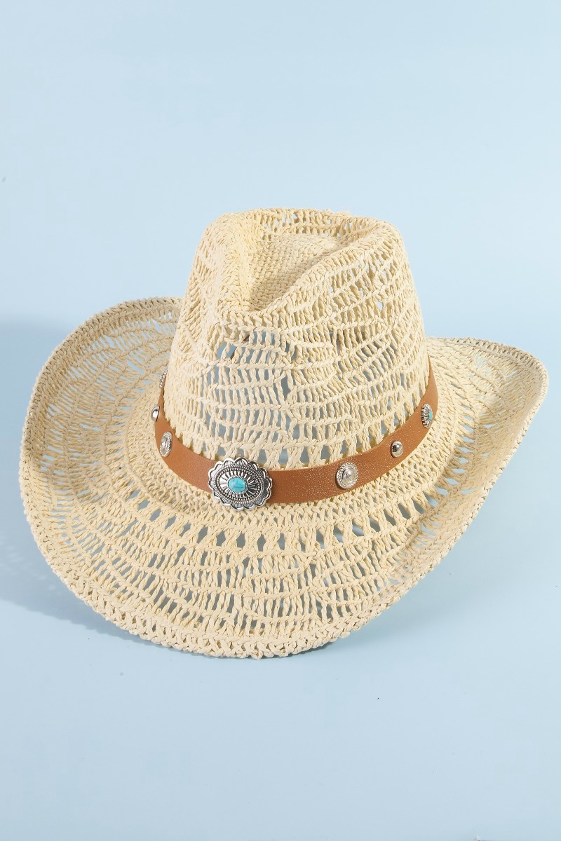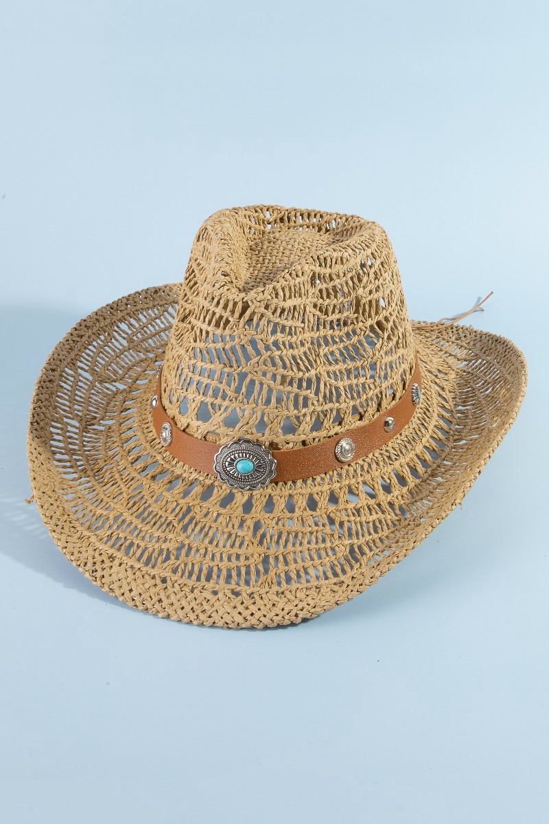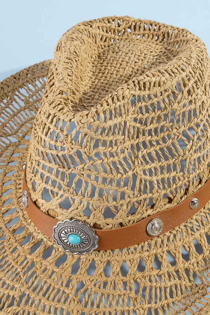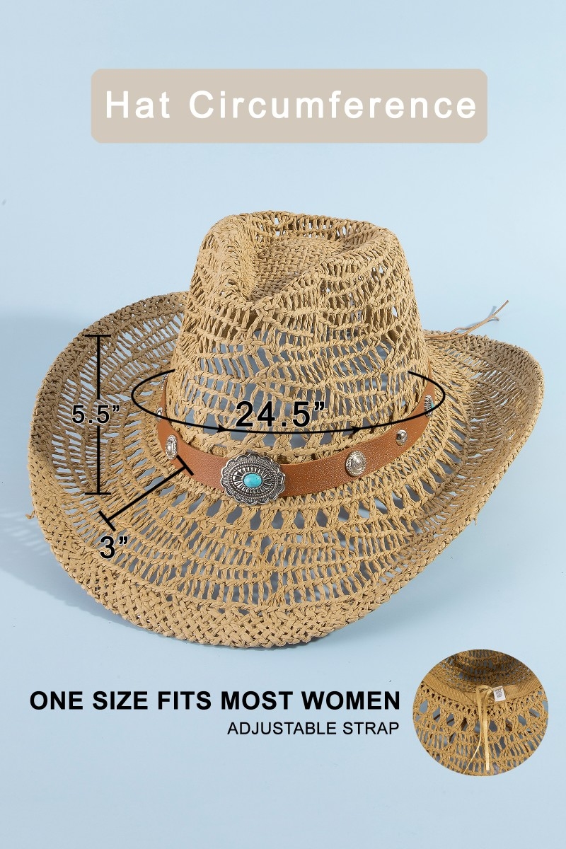 Straw Weave Concho Strap Cowboy Hat