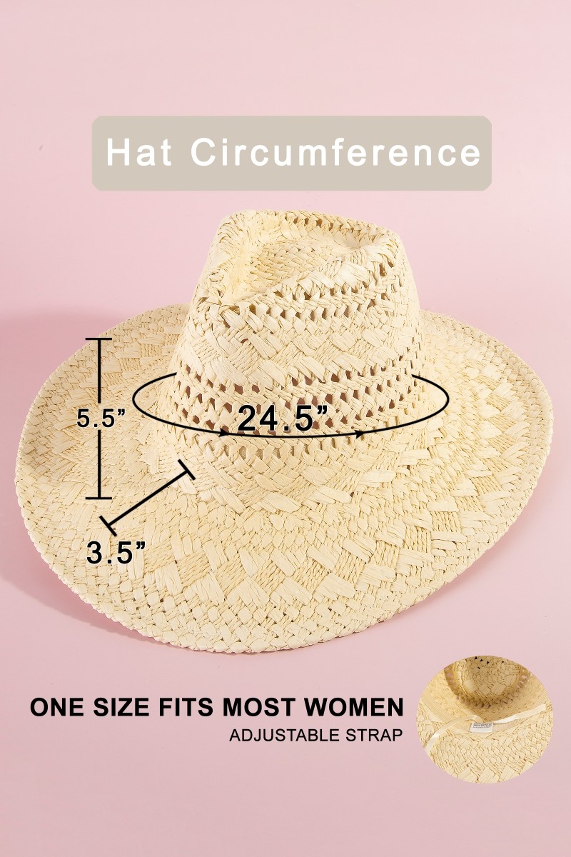 - This cowboy hat brings a stunning basket weave straw style. Experience a burst of creativity in accessorizing as this piece effortlessly sets the tone for your unique style.