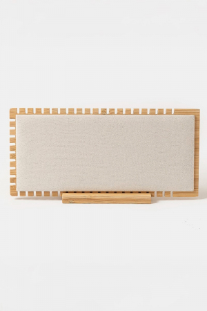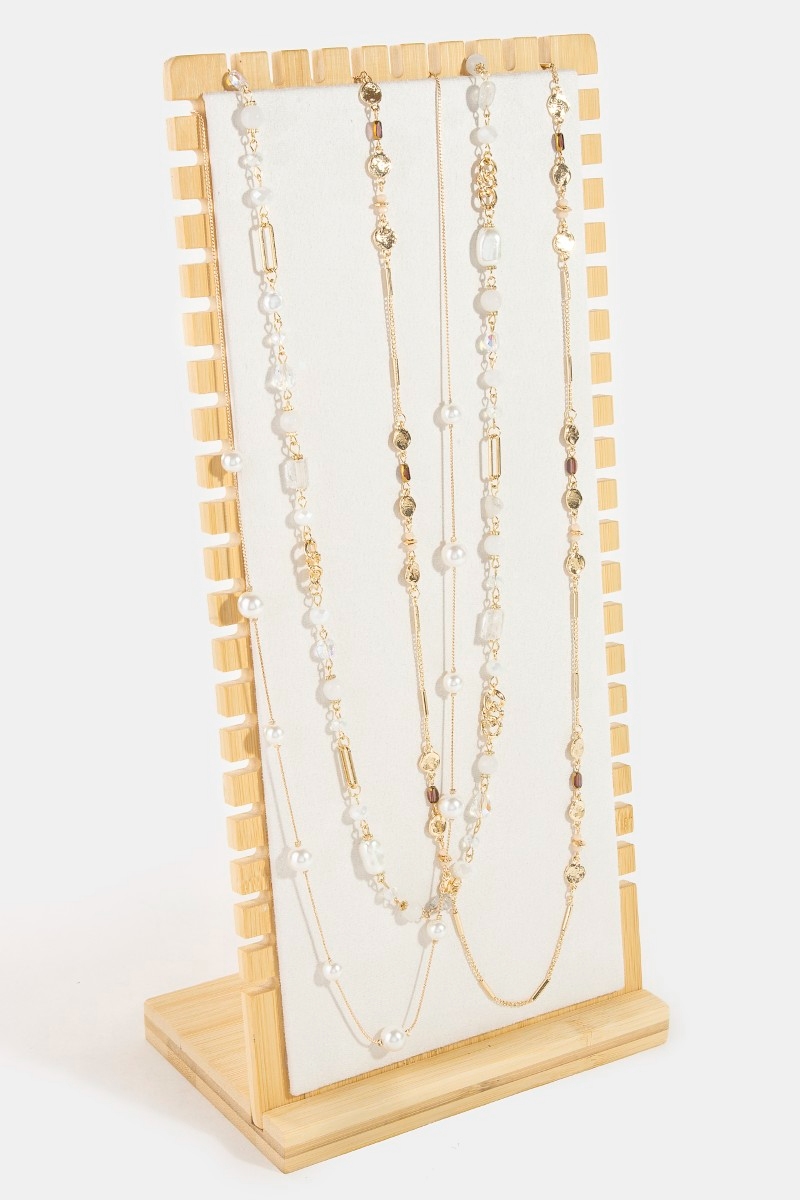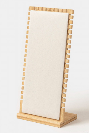 - This accessory features a fashionable elongated wooden rectangle jewelry display stand style. Savor the craftsmanship that goes beyond the ordinary, as this accessory effortlessly captivates attention.