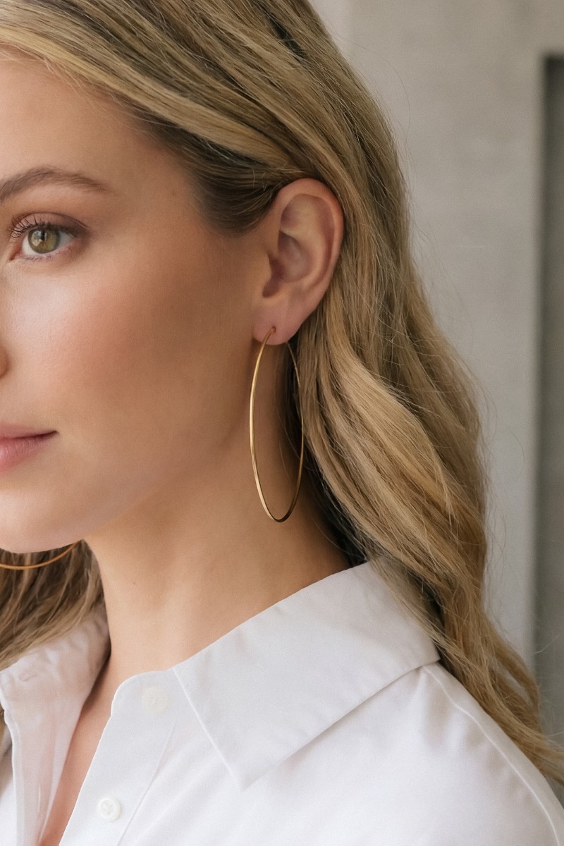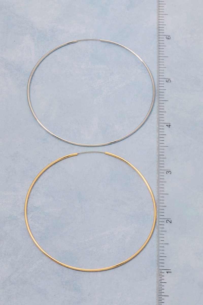 - This pair of hoop earrings displays a vibrant 60mm large style. Immerse yourself in the details of design, as this pair of hoop earrings effortlessly becomes a conversation starter.