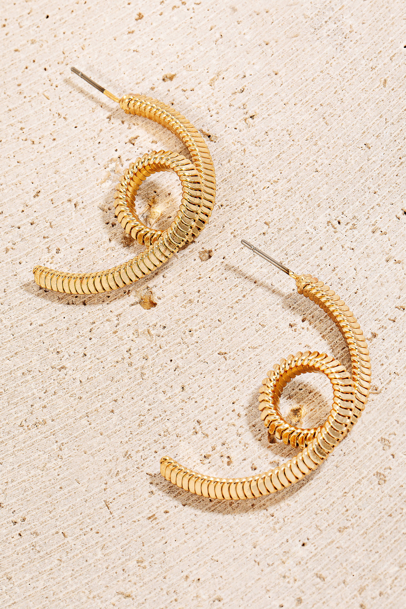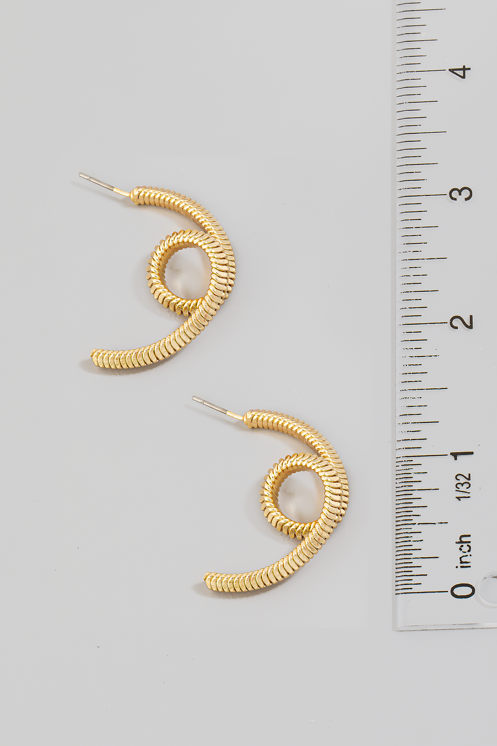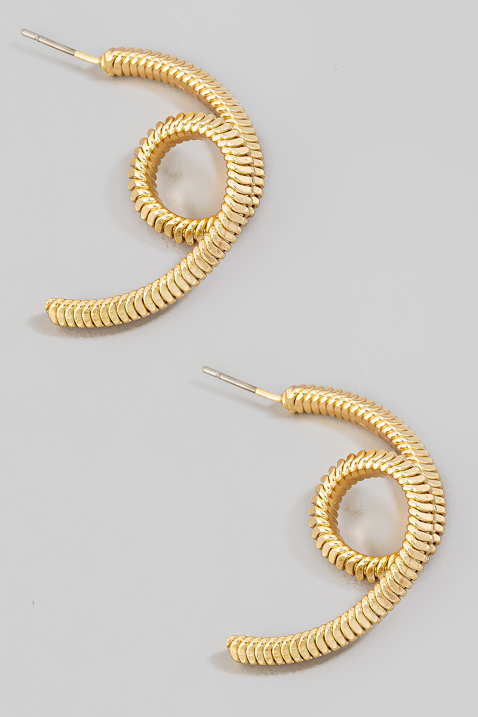 - This pair of drop earrings displays a vibrant abstract metallic swirl crescent style. Experience a subtle blend of modernity and classic charm as this accessory effortlessly adorns your ensemble.