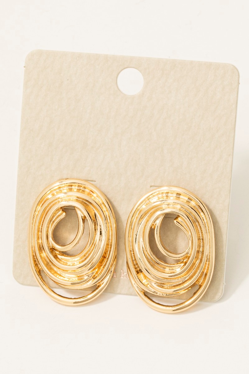 Abstract Solid Layered Ovals Stud Drop Earrings
