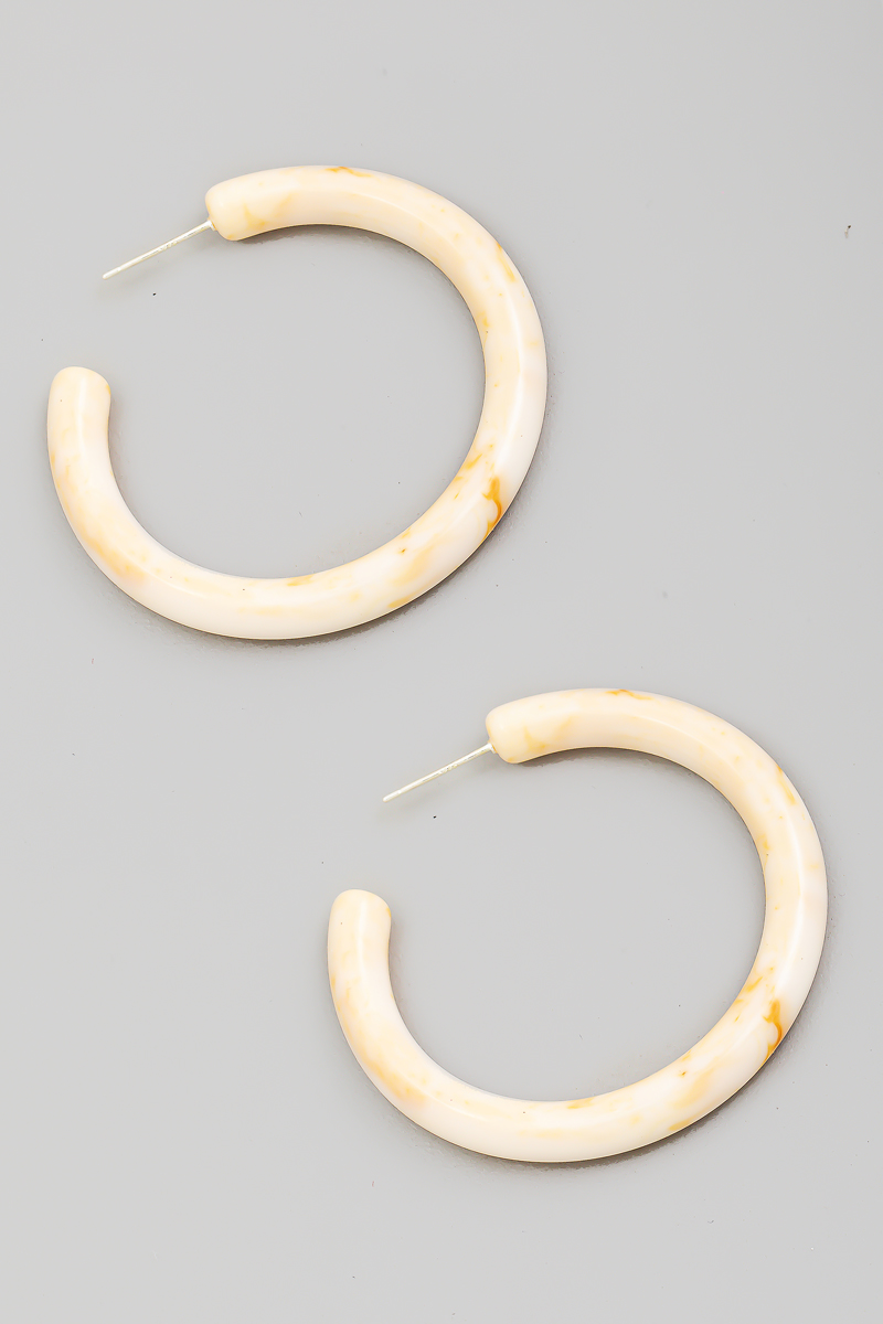 - This pair of hoop earrings features a fashionable acetate tube style. Embark on a journey of sartorial refinement as this pair of hoop earrings effortlessly complements your fashion sense.