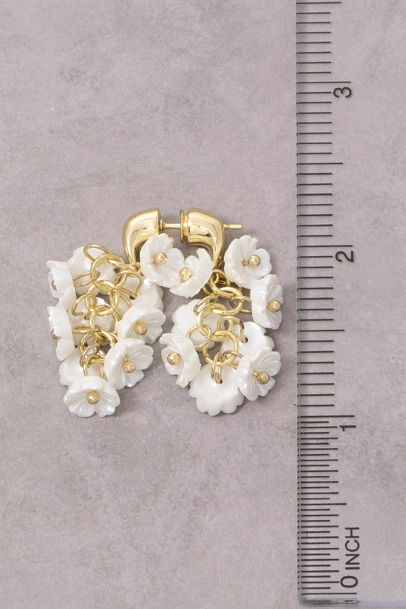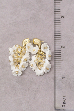 - This pair of dangle earrings features a fashionable acrylic flower cluster chain style. Witness the perfect fusion of style and functionality as this pair of dangle earrings effortlessly complements your lifestyle.