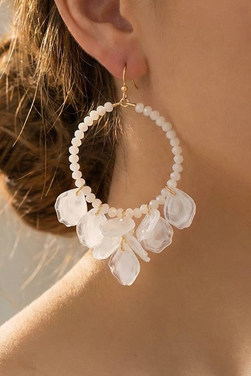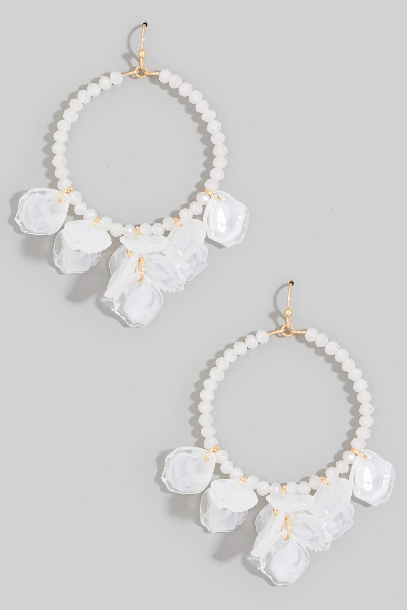 - This pair of hoop earrings brings a unique acrylic petals faceted beaded dangle style. Celebrate individual style with this versatile, eye-catching addition.