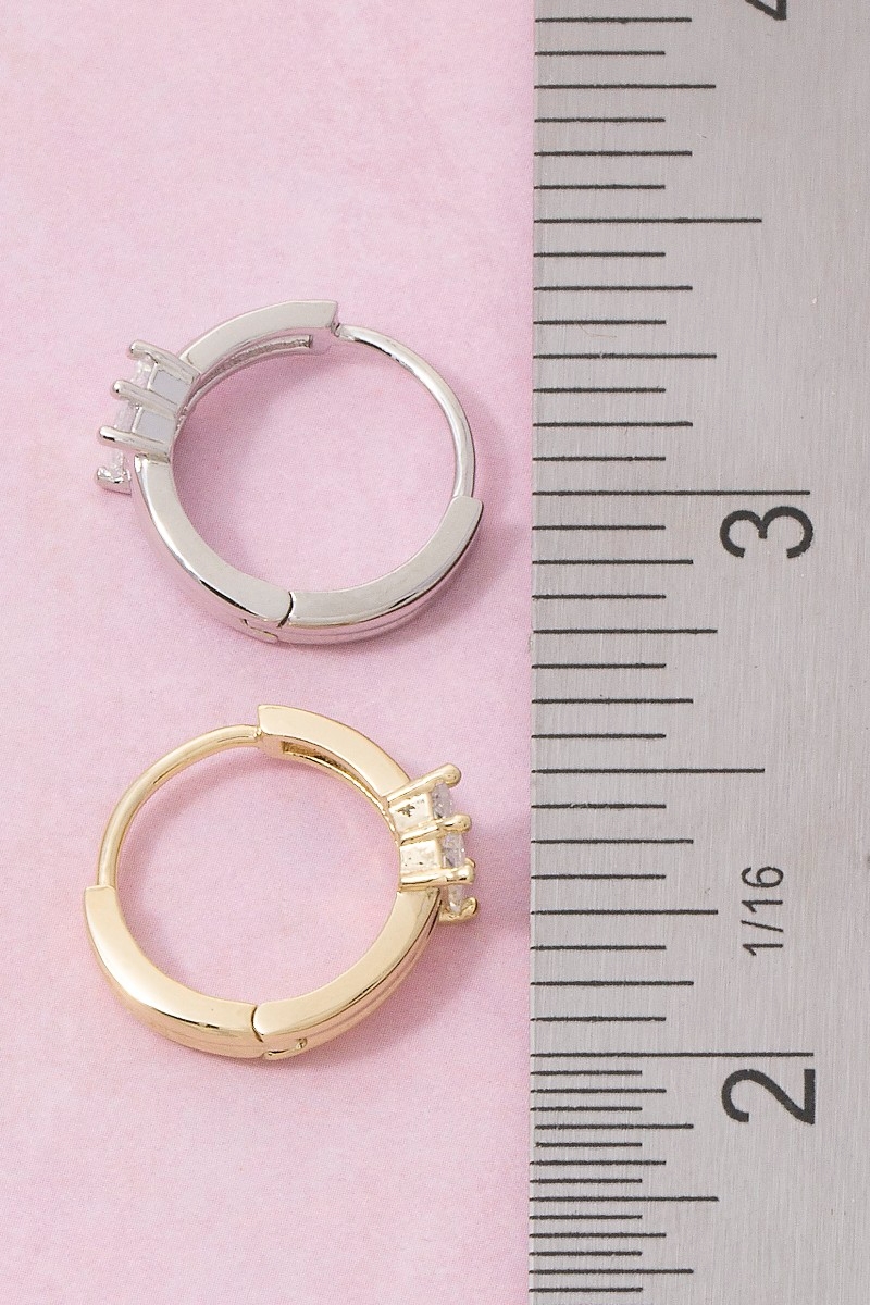 • This pair of hoop earrings brings a unique baguette cubic zirconia huggie style. Discover the perfect balance of subtlety and flair as this pair of hoop earrings effortlessly completes your look.