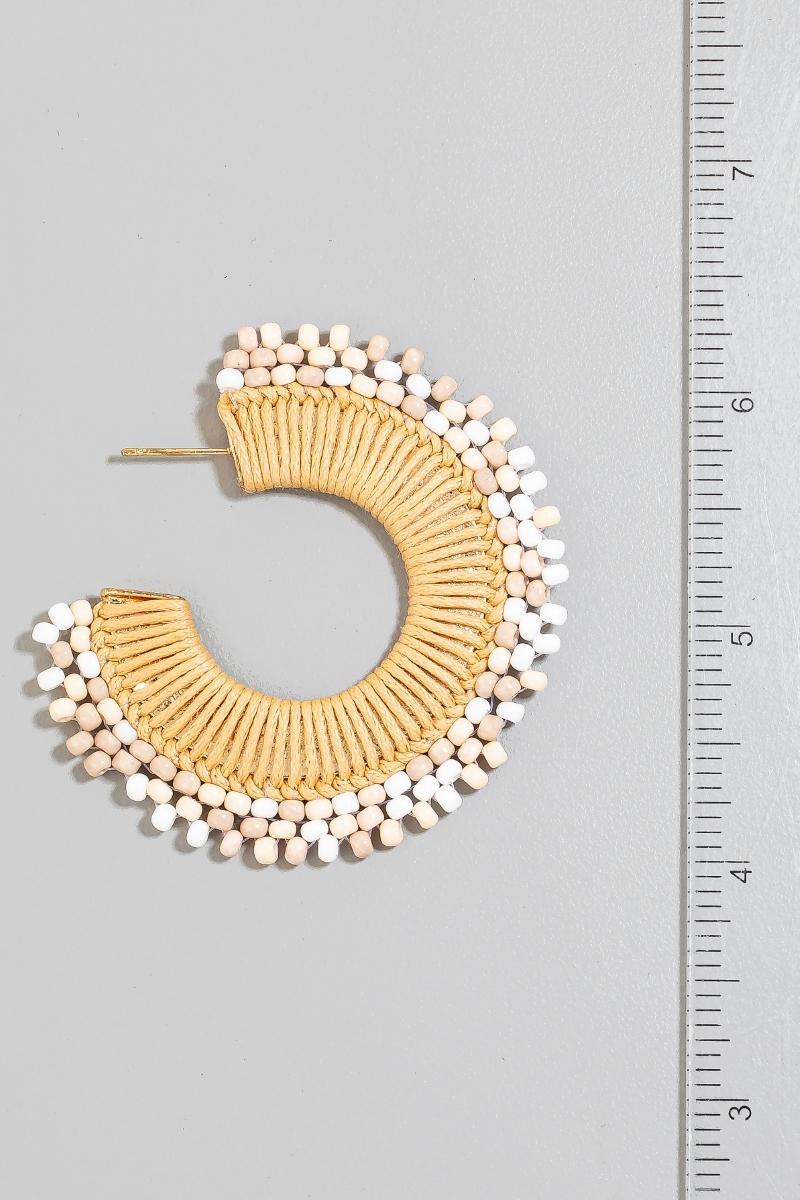 - This pair of hoop earrings brings a luxurious beaded and braided flat style. Celebrate the art of accessorizing with this piece that effortlessly encapsulates modern trends.