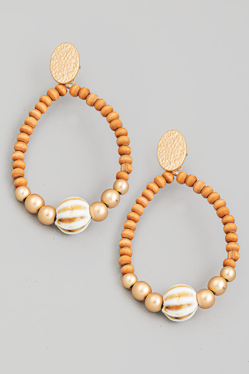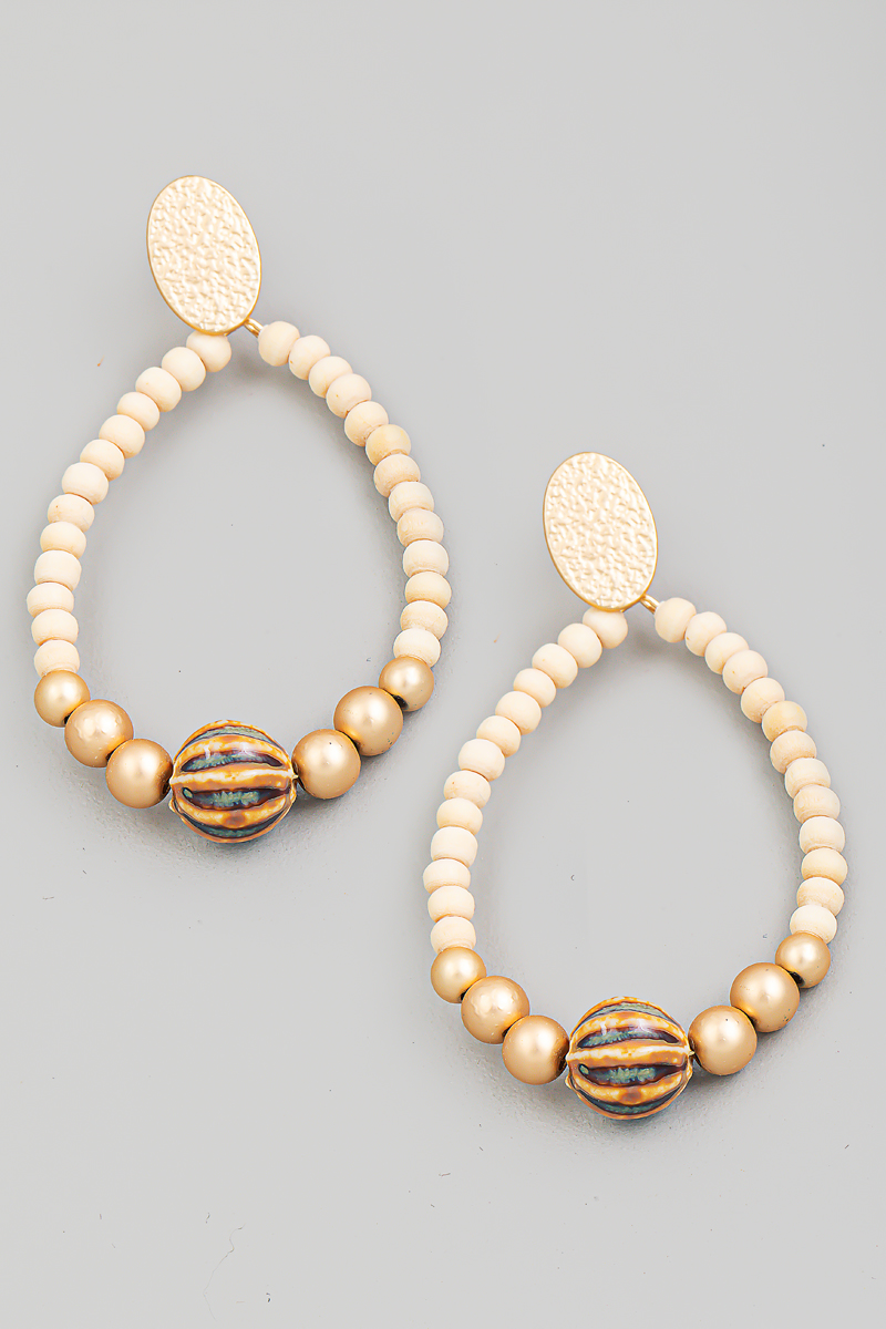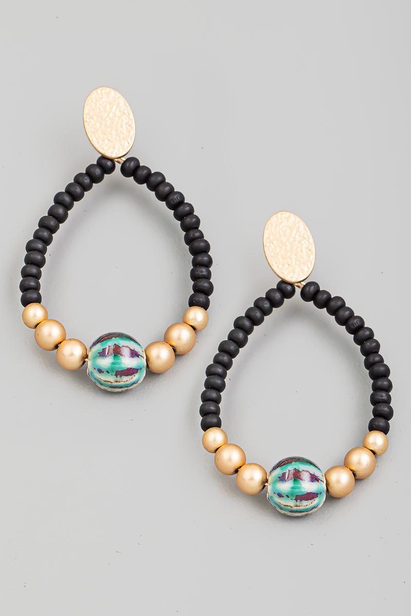 Semi Precious Stone And Metallic Beaded Tear Dangle Earrings