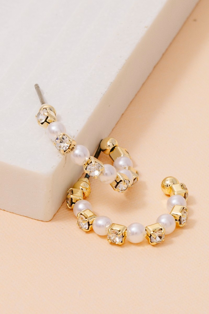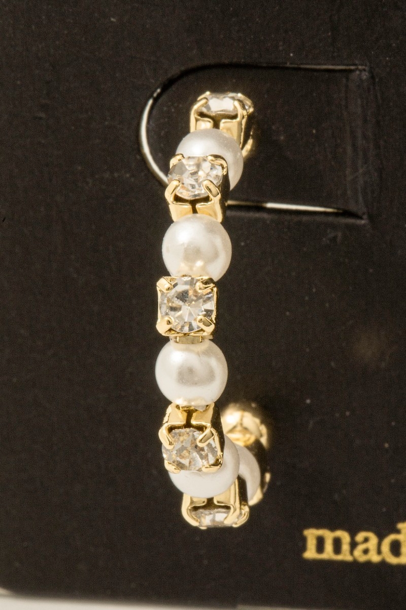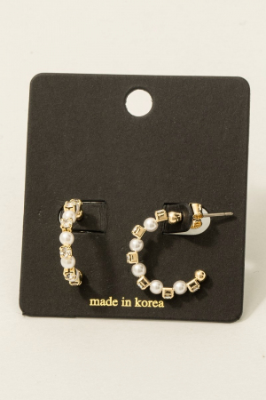 - This pair of hoop earrings features a fashionable cube and pearl beaded style. Savor the allure of detailed craftsmanship in this exquisite pair of hoop earrings.
