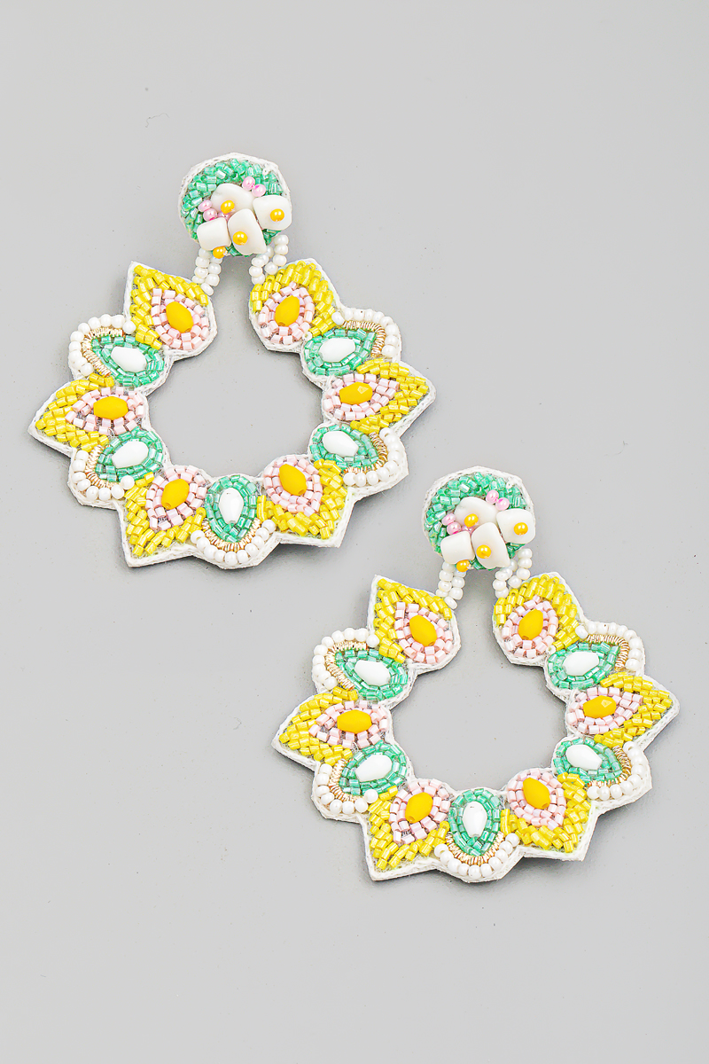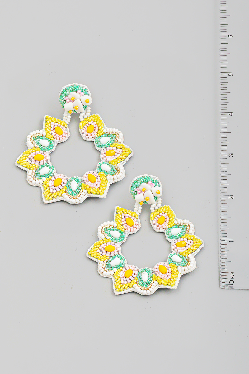 Floral Beaded Tear Drop Dangle Earrings