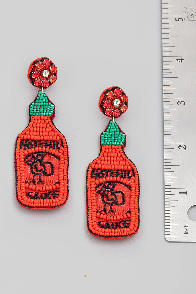 Seed Beaded Heart And Disc Dangle Earrings