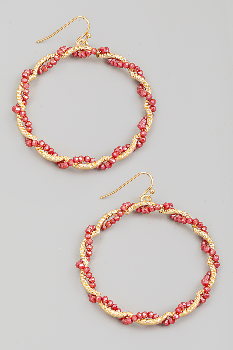 Marble Resin Ball Beaded Hoop Earrings