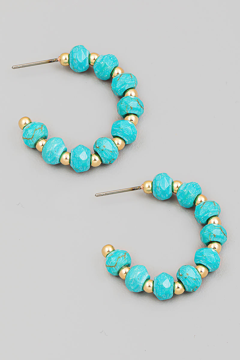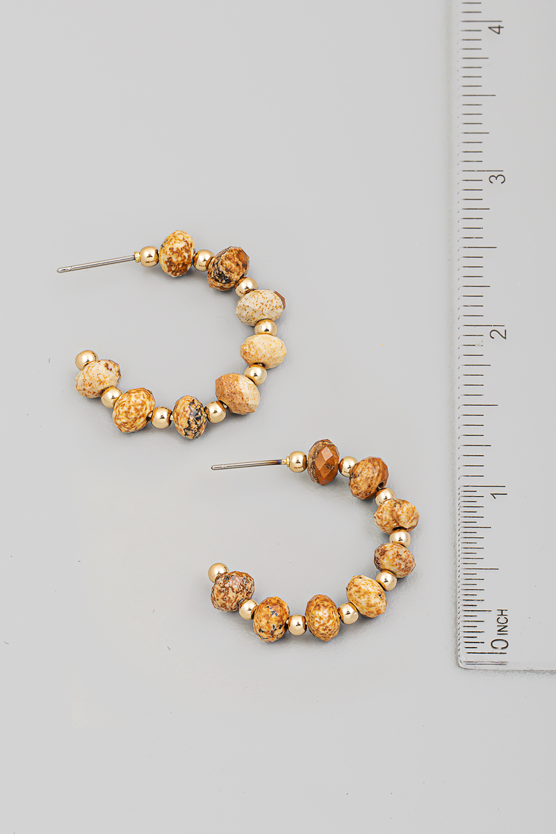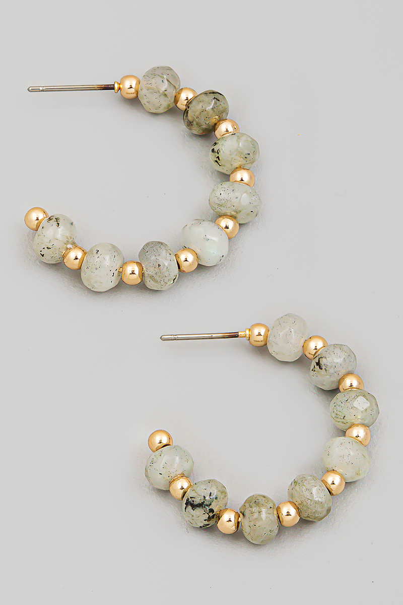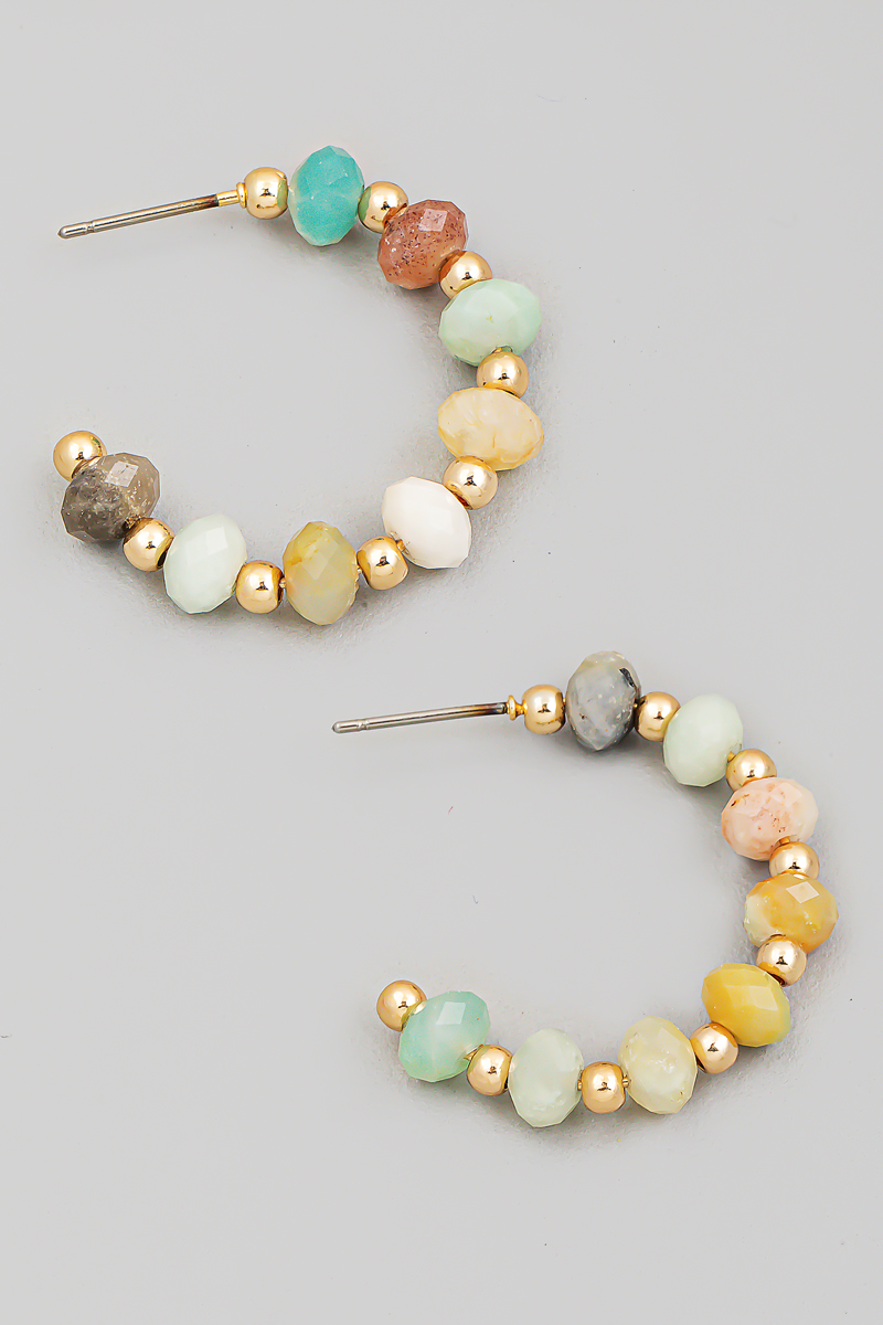 Semi Precious Stone And Metallic Beaded Tear Dangle Earrings