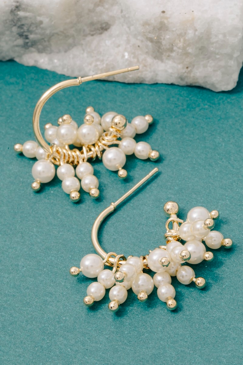 - This pair of earrings showcases a timeless pearl beaded fringe style. Experience refined sophistication with this understated yet stylish piece.