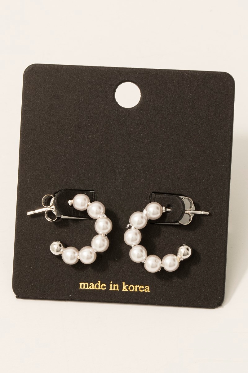 - This pair of hoop earrings showcases a timeless pearl beaded style. Witness the transformative power of accessories as this piece effortlessly redefines your fashion narrative.