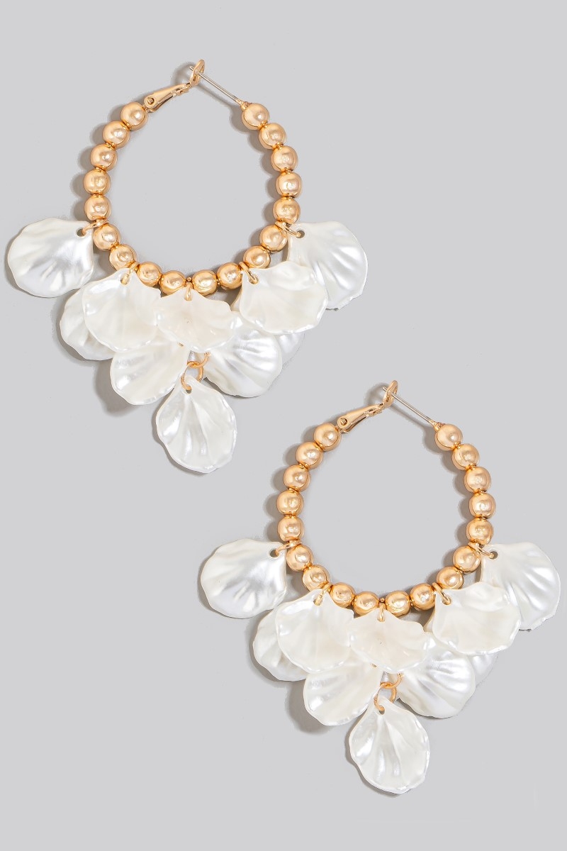 - This pair of hoop earrings showcases a timeless pearl petal charms beaded latch style. Step into a world of refined taste as this pair of hoop earrings effortlessly refines the details of your outfit.