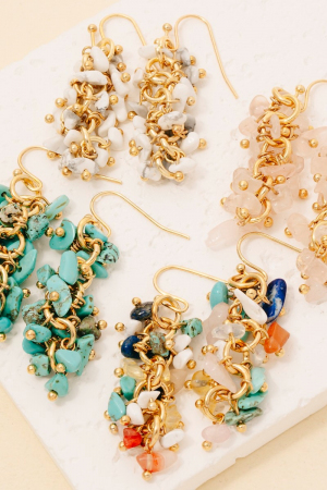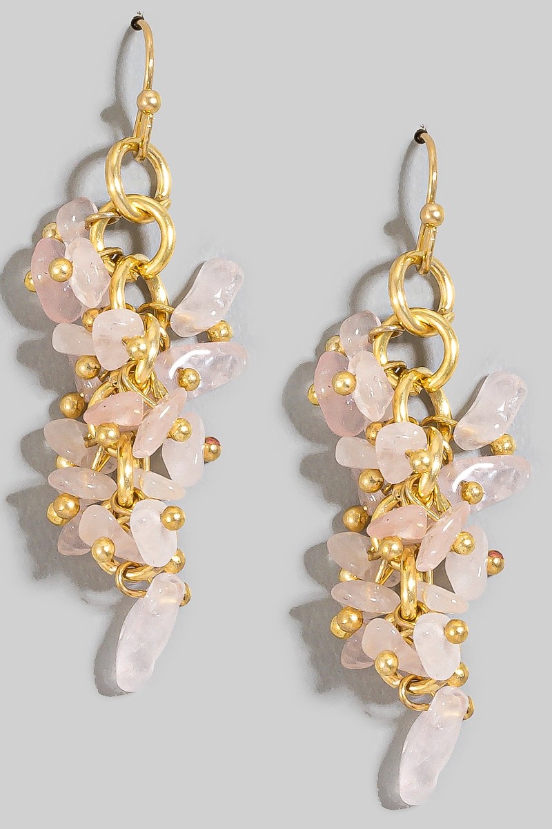 - This pair of dangle earrings displays a vibrant pebble stone beaded fringe style. Explore a refined sense of style with this pair of dangle earrings, seamlessly elevating the chic factor of your look.
