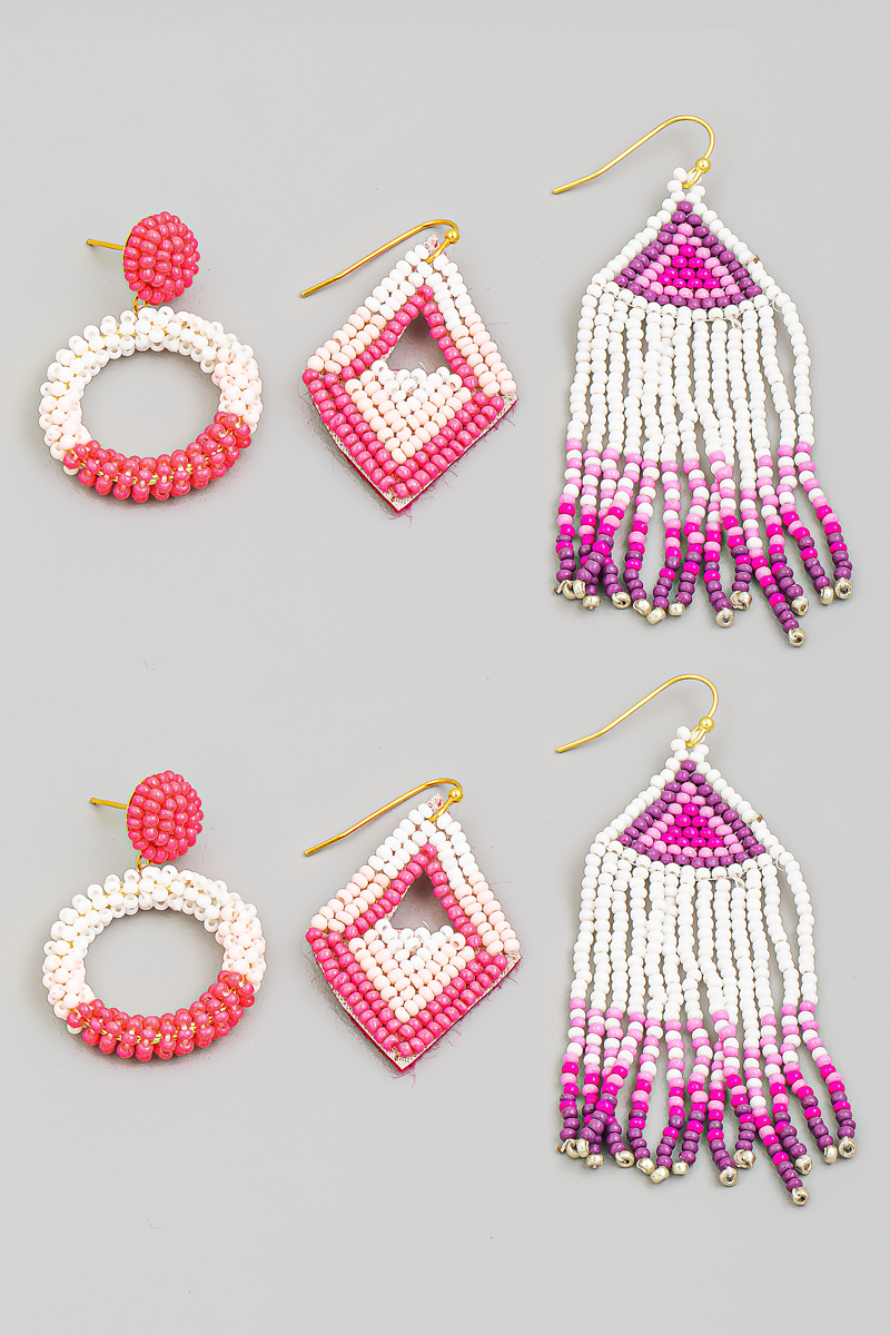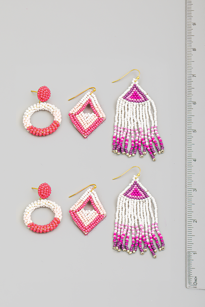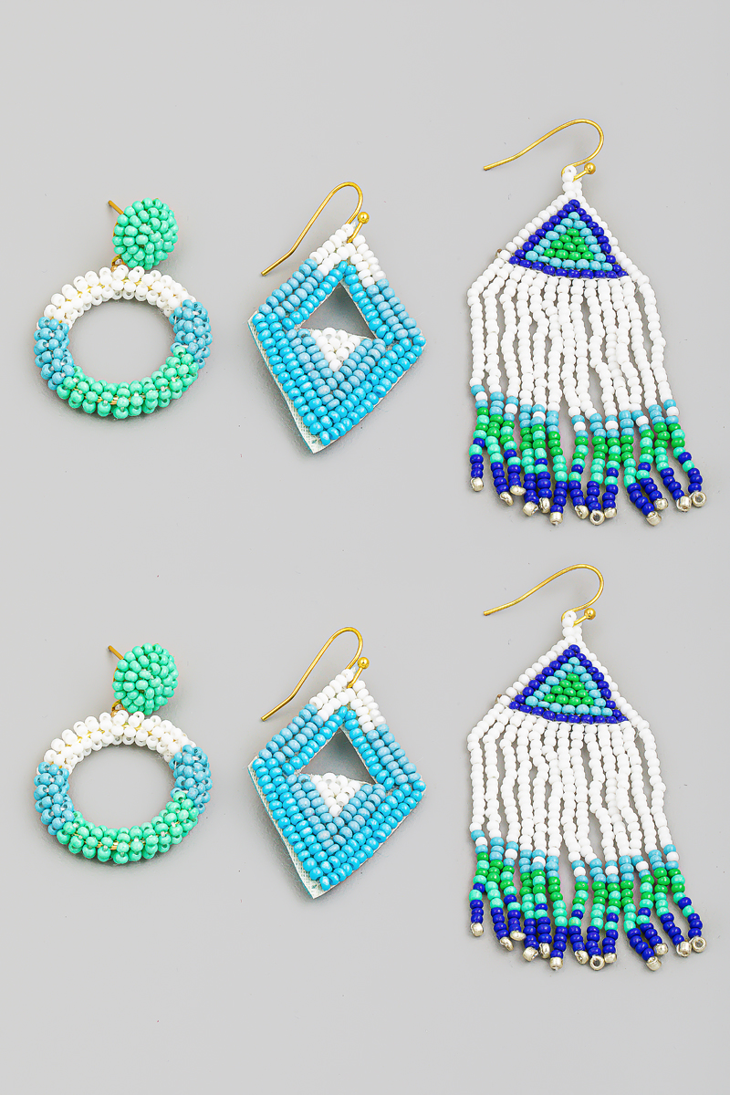 Semi Precious Stone And Metallic Beaded Tear Dangle Earrings
