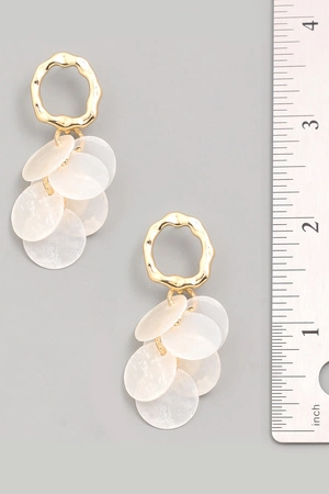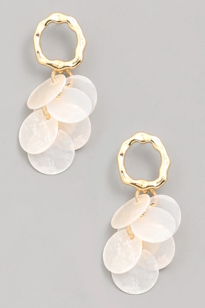 Wide Gold Frame Shell Dangle Drop Earrings