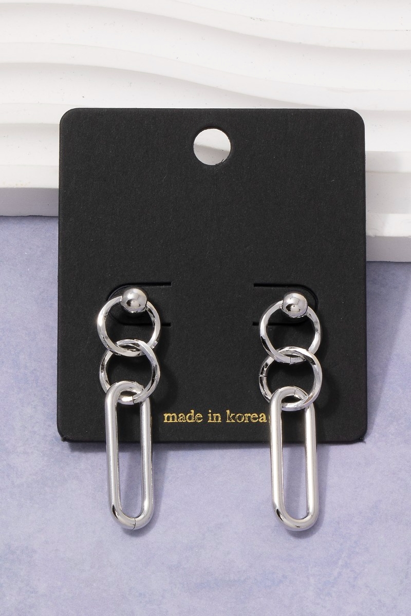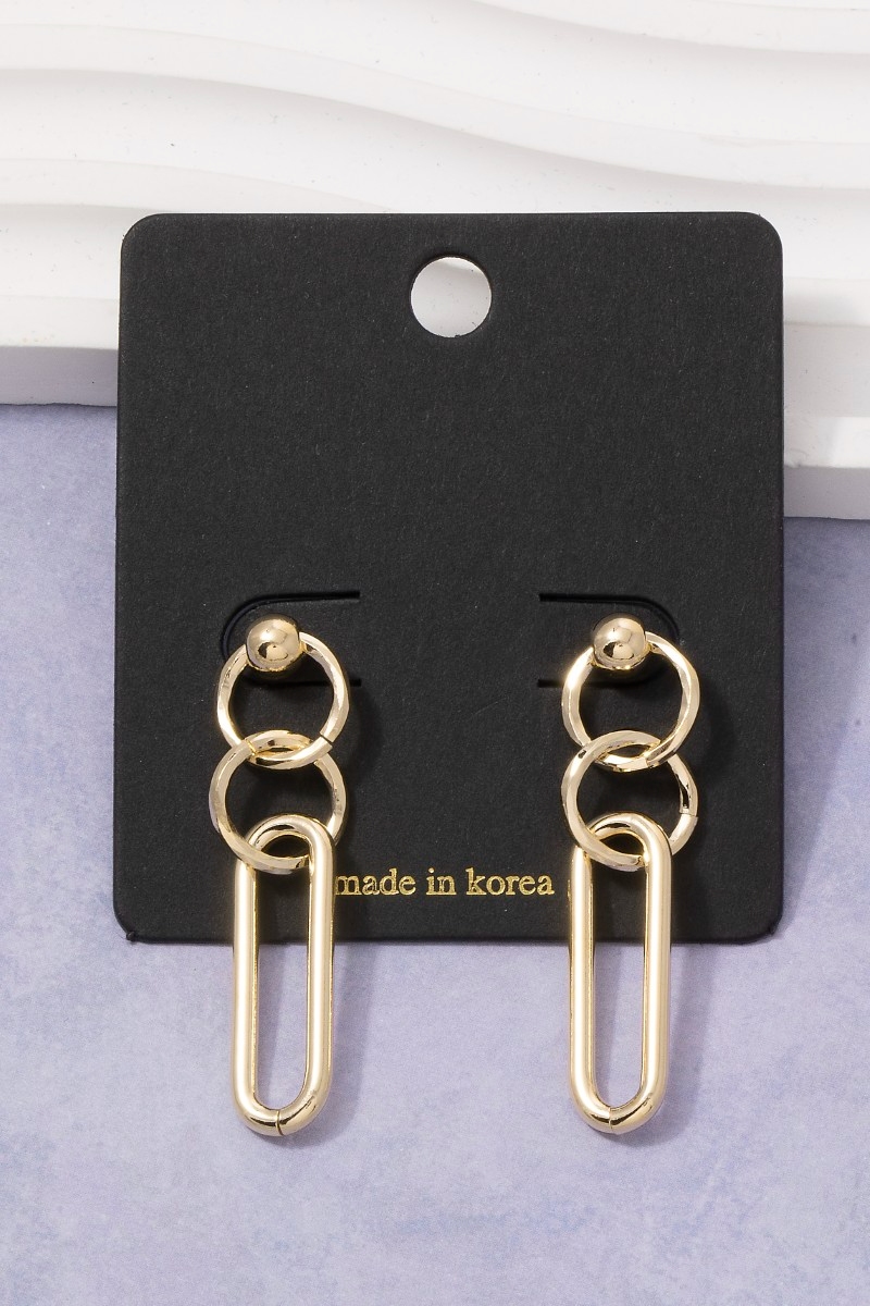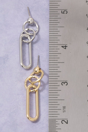 - This pair of drop earrings introduces a unique chain link circle & oval style. Witness the transformative power of accessories as this piece effortlessly redefines your fashion narrative.