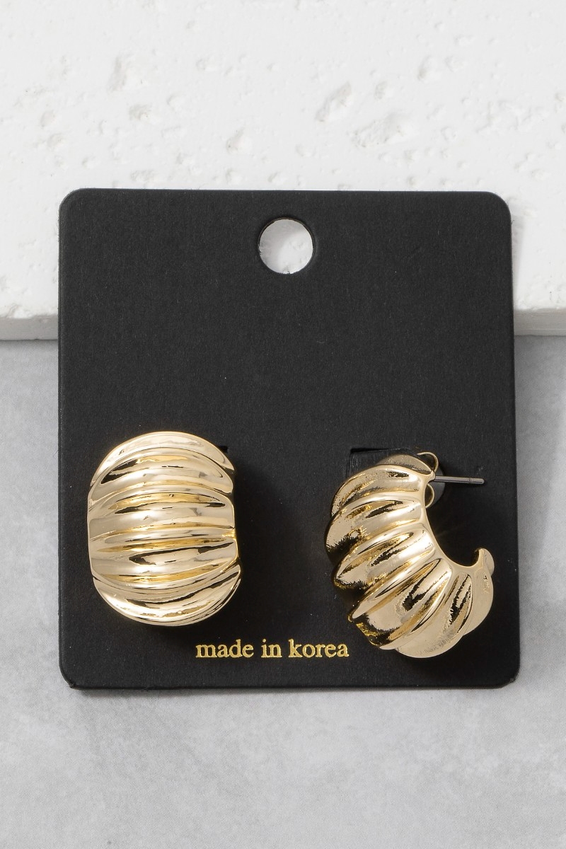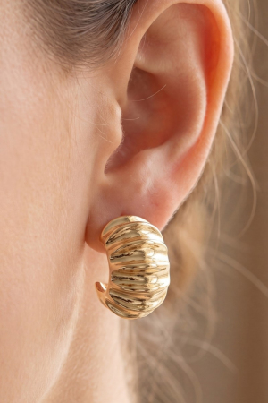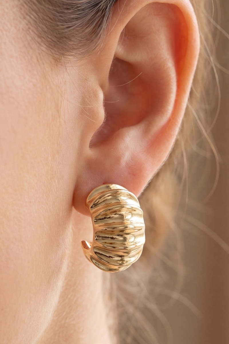 • This pair of hoop earrings brings a stunning chunky ribbed wide band dome style. Elevate your ensemble with this chic, timeless pair of hoop earrings.