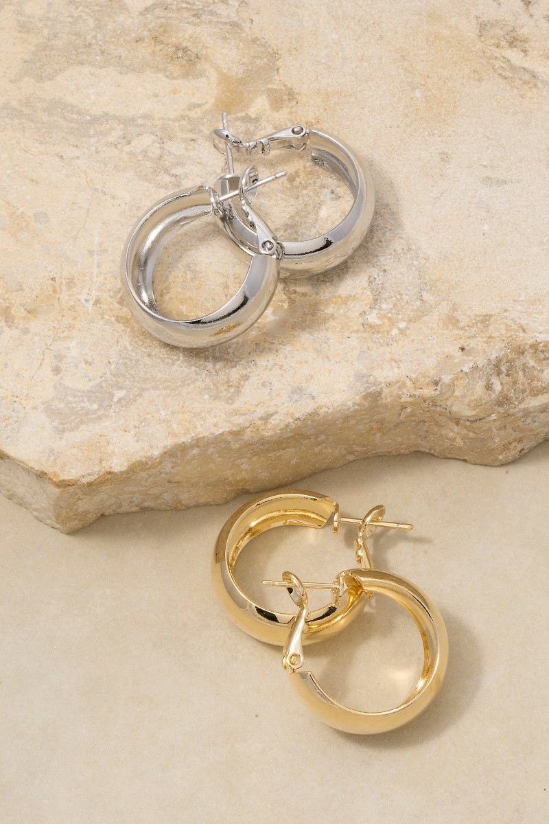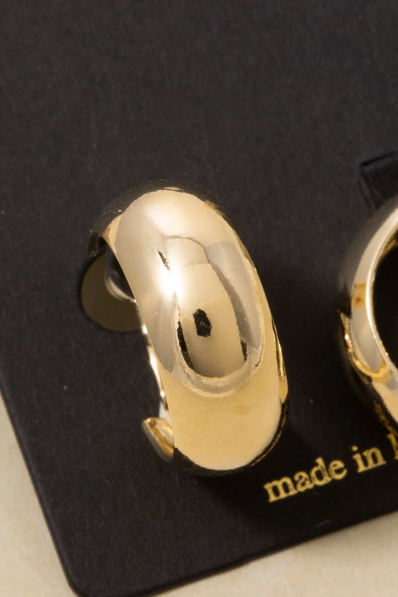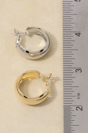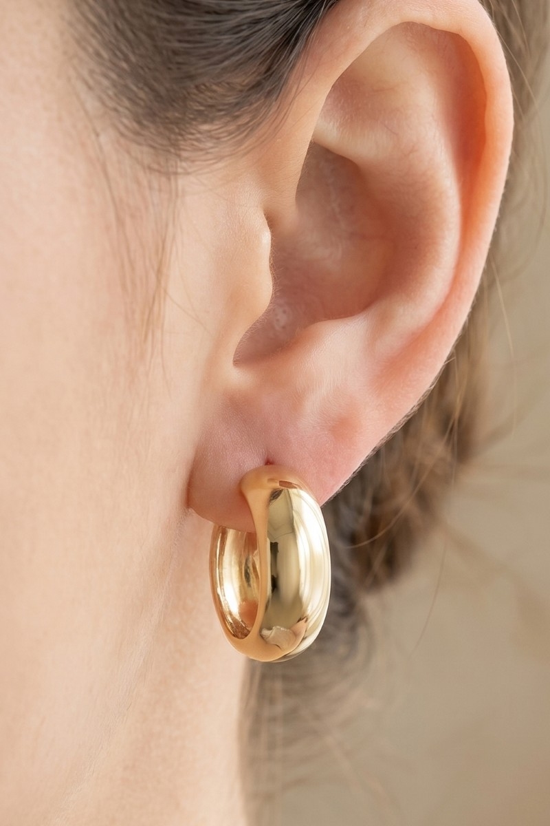 - This pair of hoop earrings introduces a stunning chunky wide dome huggie style. Revel in the intricate design that effortlessly distinguishes this pair of hoop earrings, making it a statement piece.