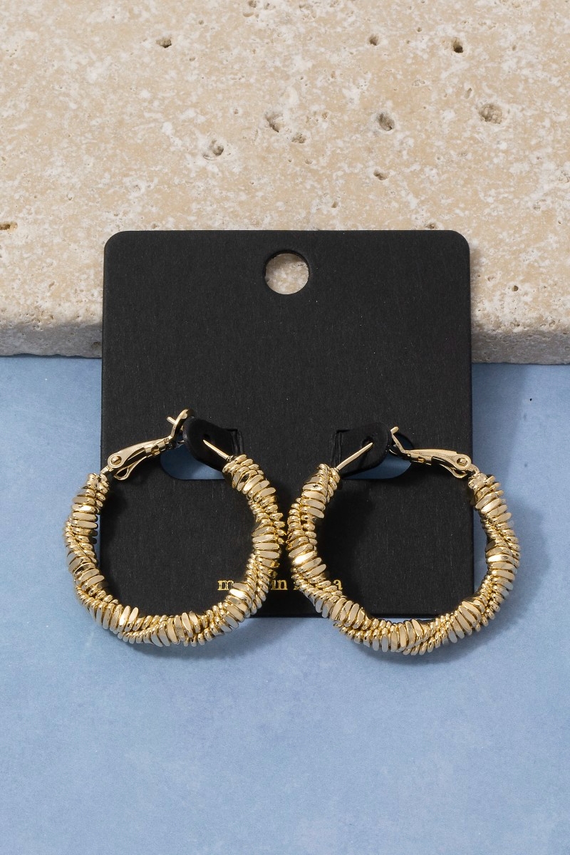 Faceted Beaded Twisted Double-Strand Large Hoop Earrings
